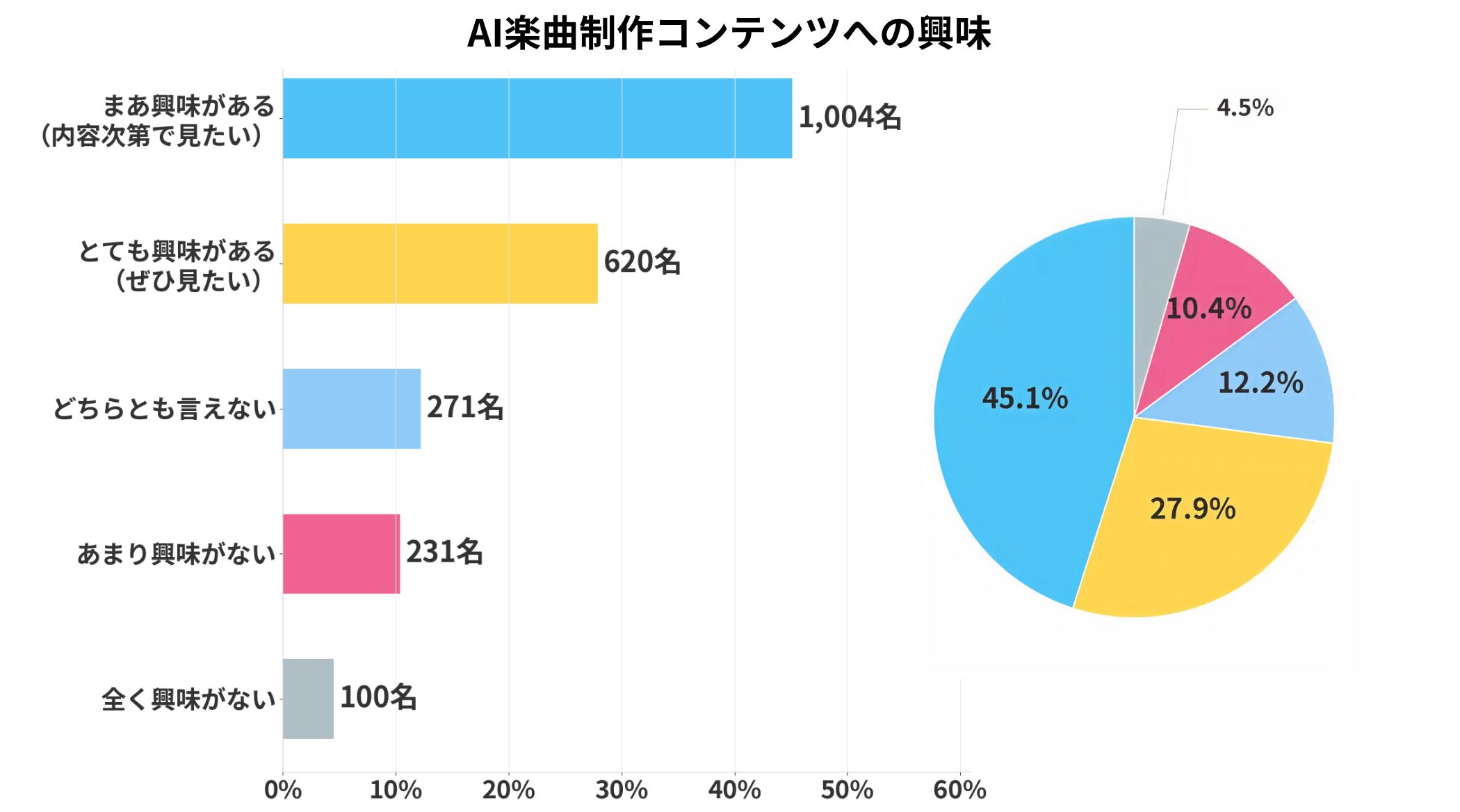 AIと楽曲制作を絡めたコンテンツについては、約7割が「興味あり」と回答。