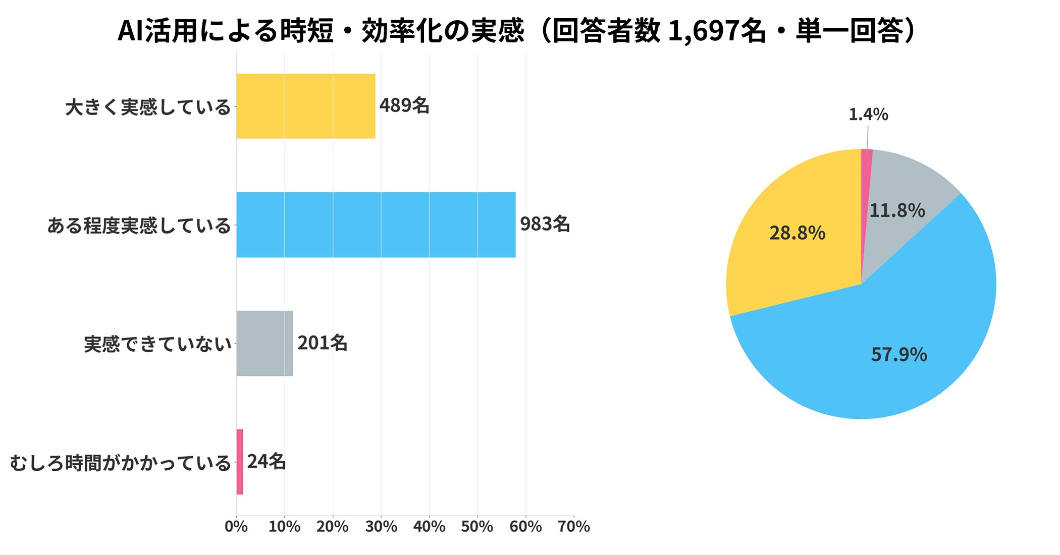 AIツール使用経験者に、時短・効率化を実感しているかを聞きました。