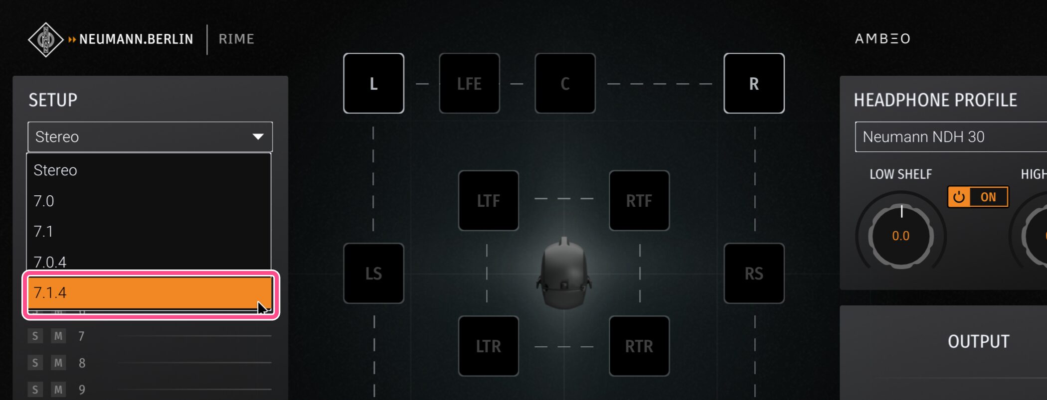 次に、RIME側の設定で、「SETUP」セクションから「7.1.4」を選択します。