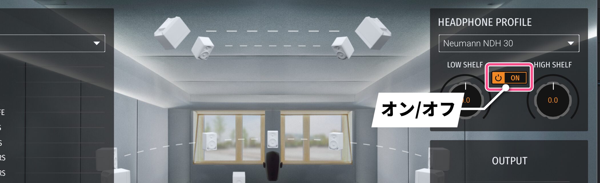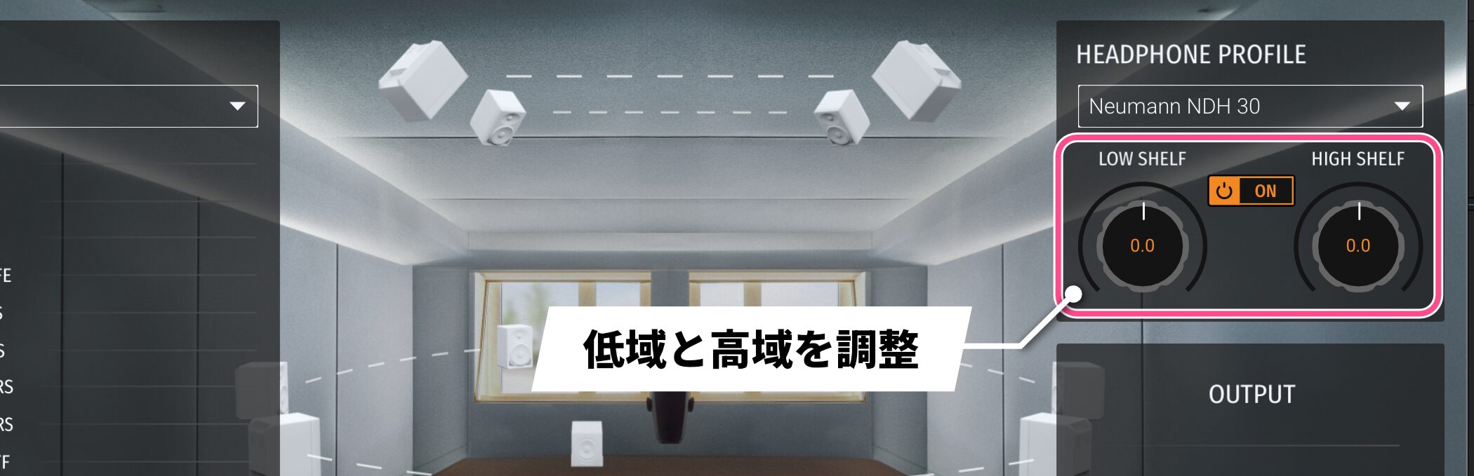 「HEADPHONE PROFILE」セクションには、「LOW SHELF」と「HIGH SHELF」の2つのシェルビングEQが搭載されており、低域と高域を調整できます。