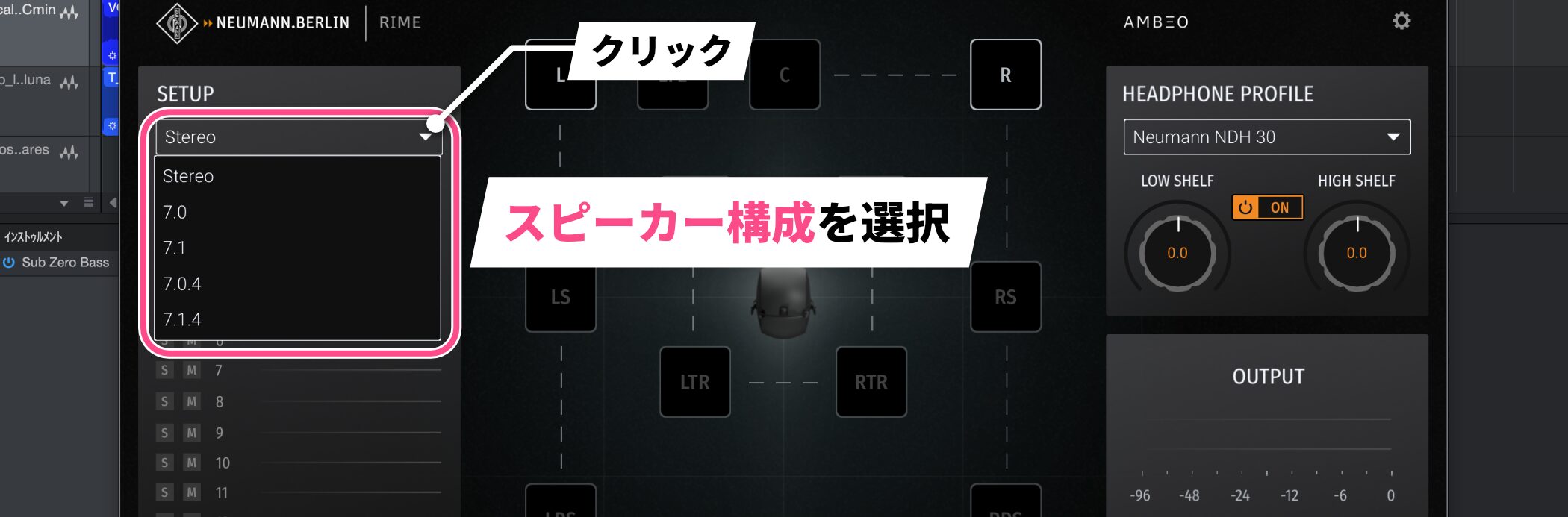 次に、左上の「SETUP」セクションから、再現したいスピーカーの構成を選択します。