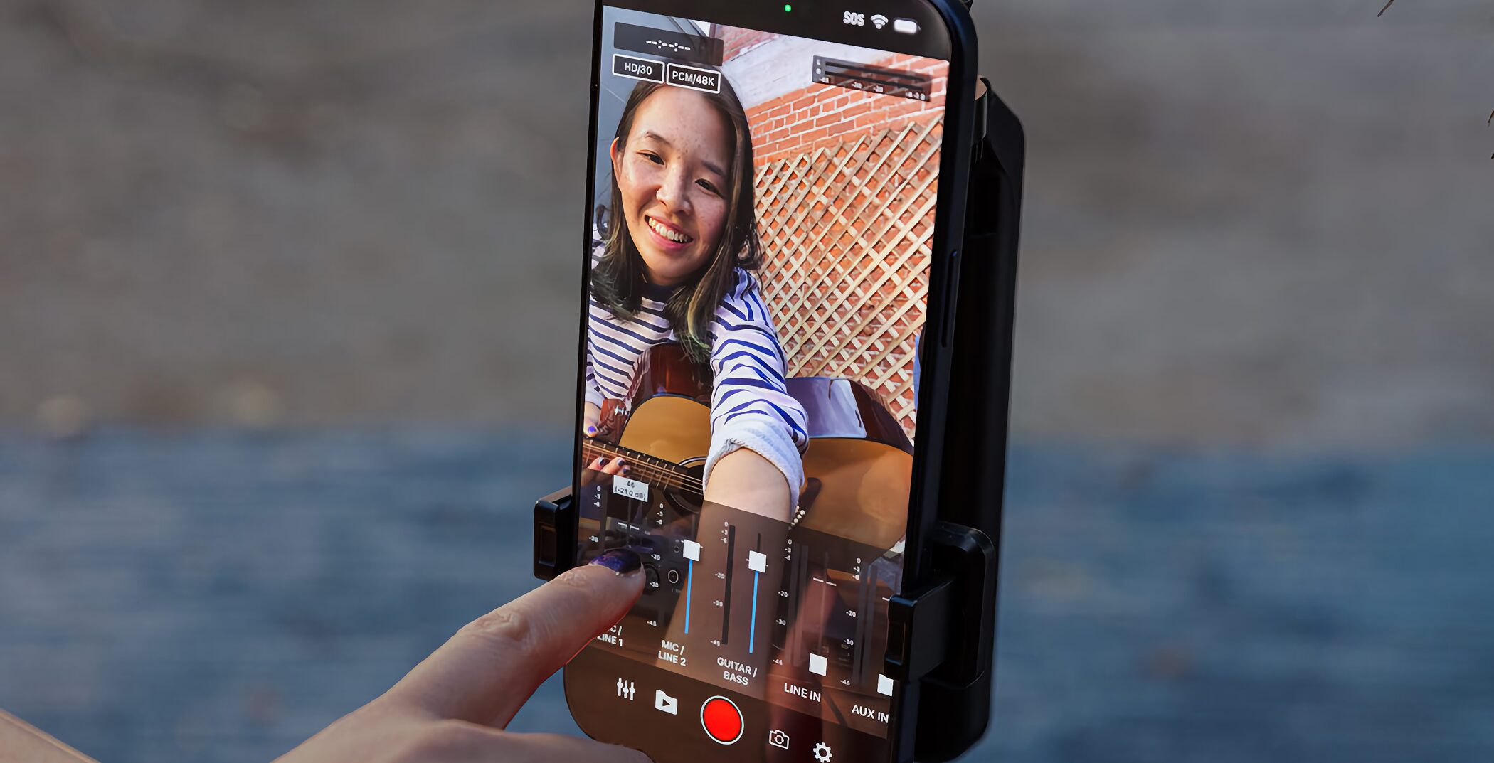 iOS/iPadOS向けの「GO:MIXER Cam」を使用すれば、録画した動画ファイルのギターやボーカルなど、各楽器の音声バランスを後から調整してリミックス書き出しできます。
