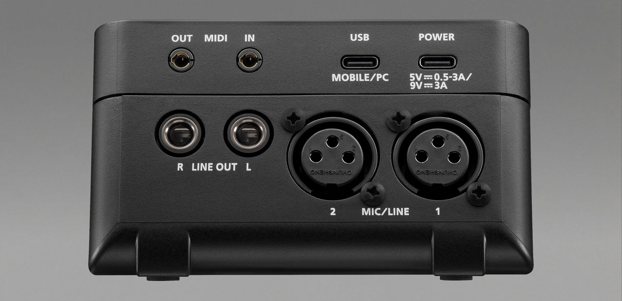 マイク、楽器、ヘッドセット、iPhone/iPad、MIDI機器まで、音声入出力を一台に集約できる入出力構成が本機の大きな特徴です。