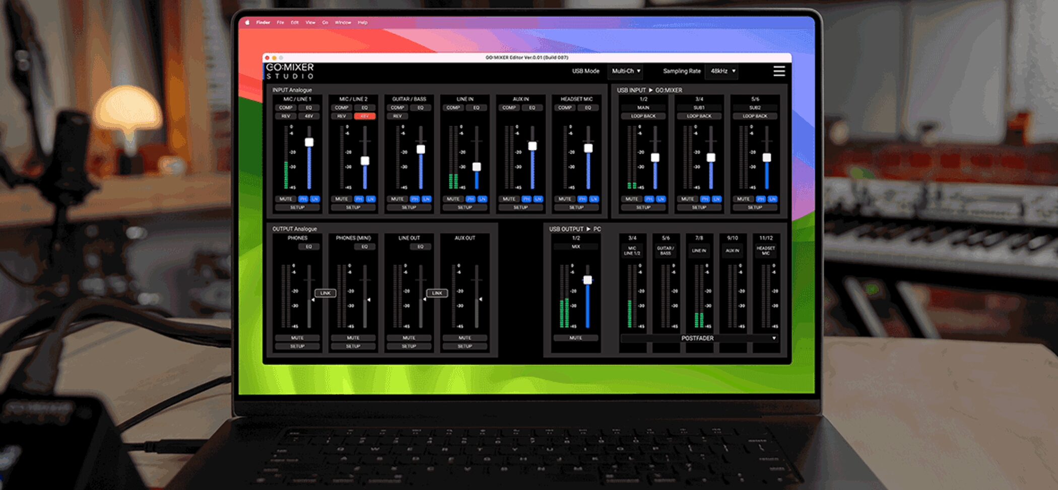 GO:MIXER STUDIOは、配信用途とマルチトラック録音用途の両方に対応するよう、USB周りの設計が丁寧に作られています。