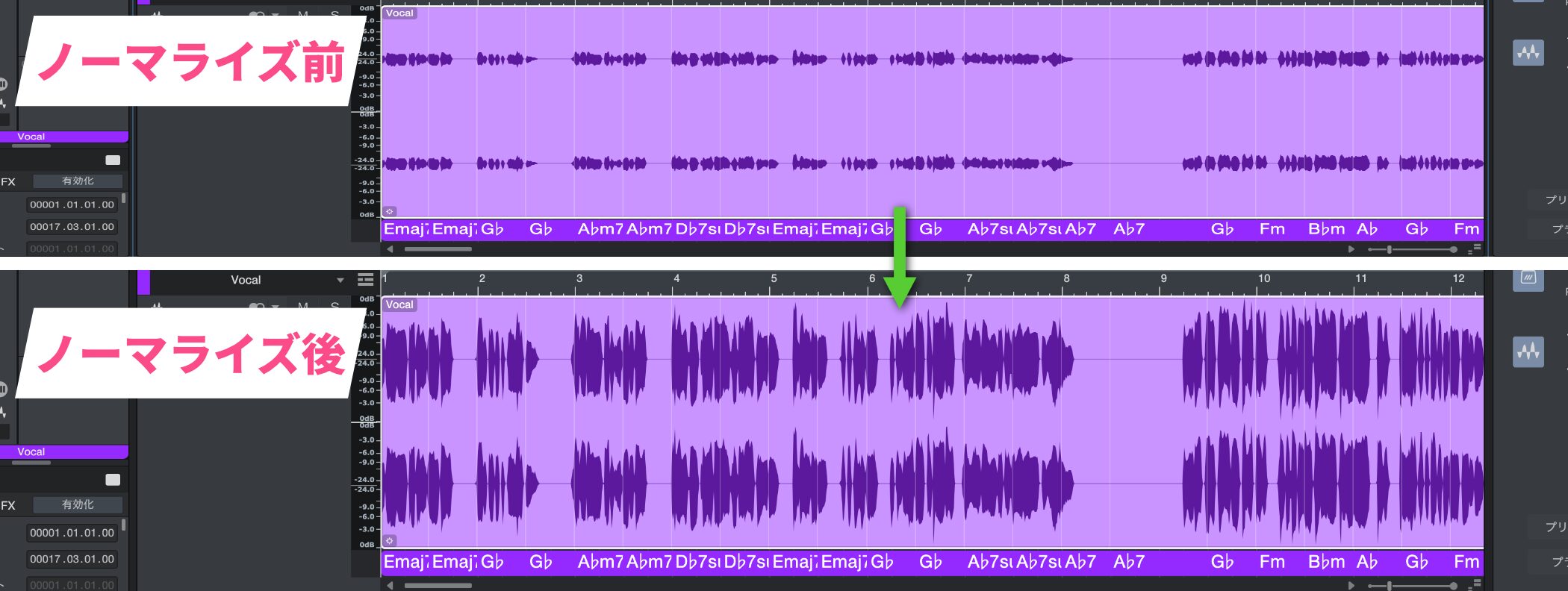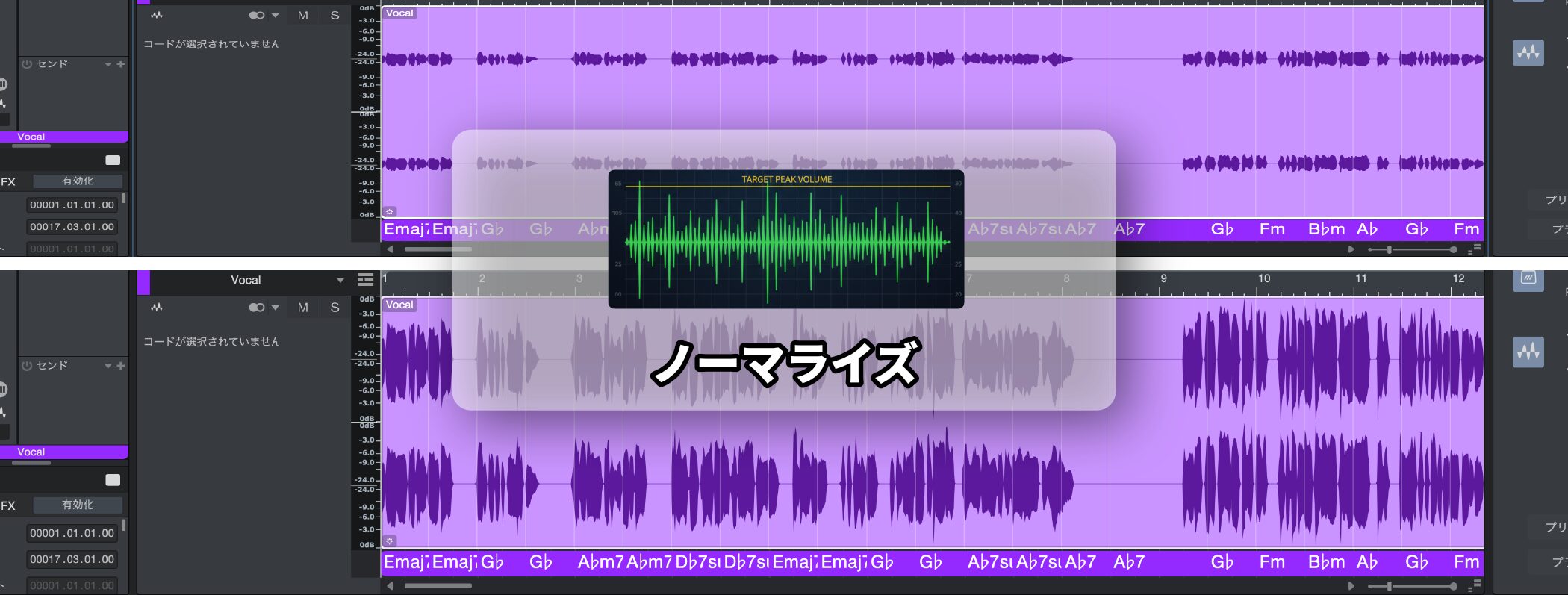 音量の小さな素材も、ノーマライズをうまく活用することで楽曲の中で扱いやすくなります。