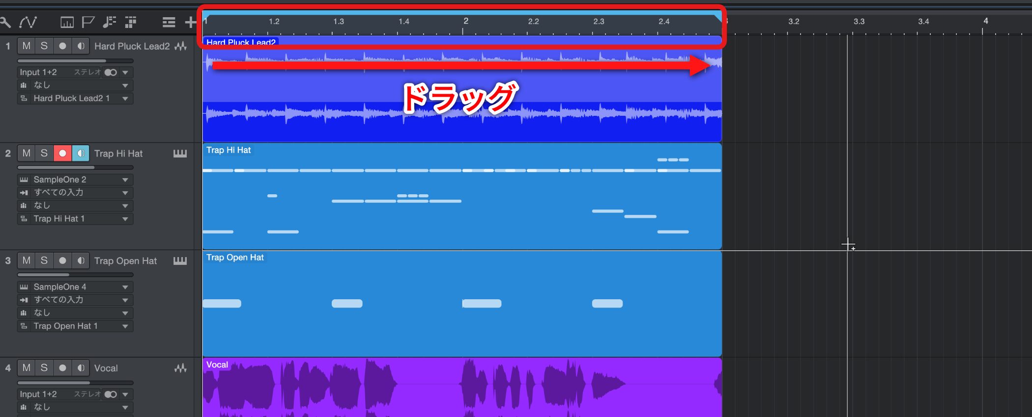 書き出されたものが、プロジェクトに合うよう楽曲の頭から指定することをお勧めします。