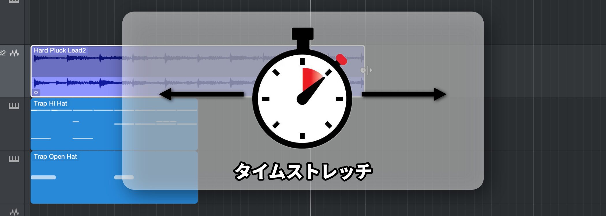 タイムストレッチは、オーディオやMIDIの演奏内容を伸縮させることができる機能です。