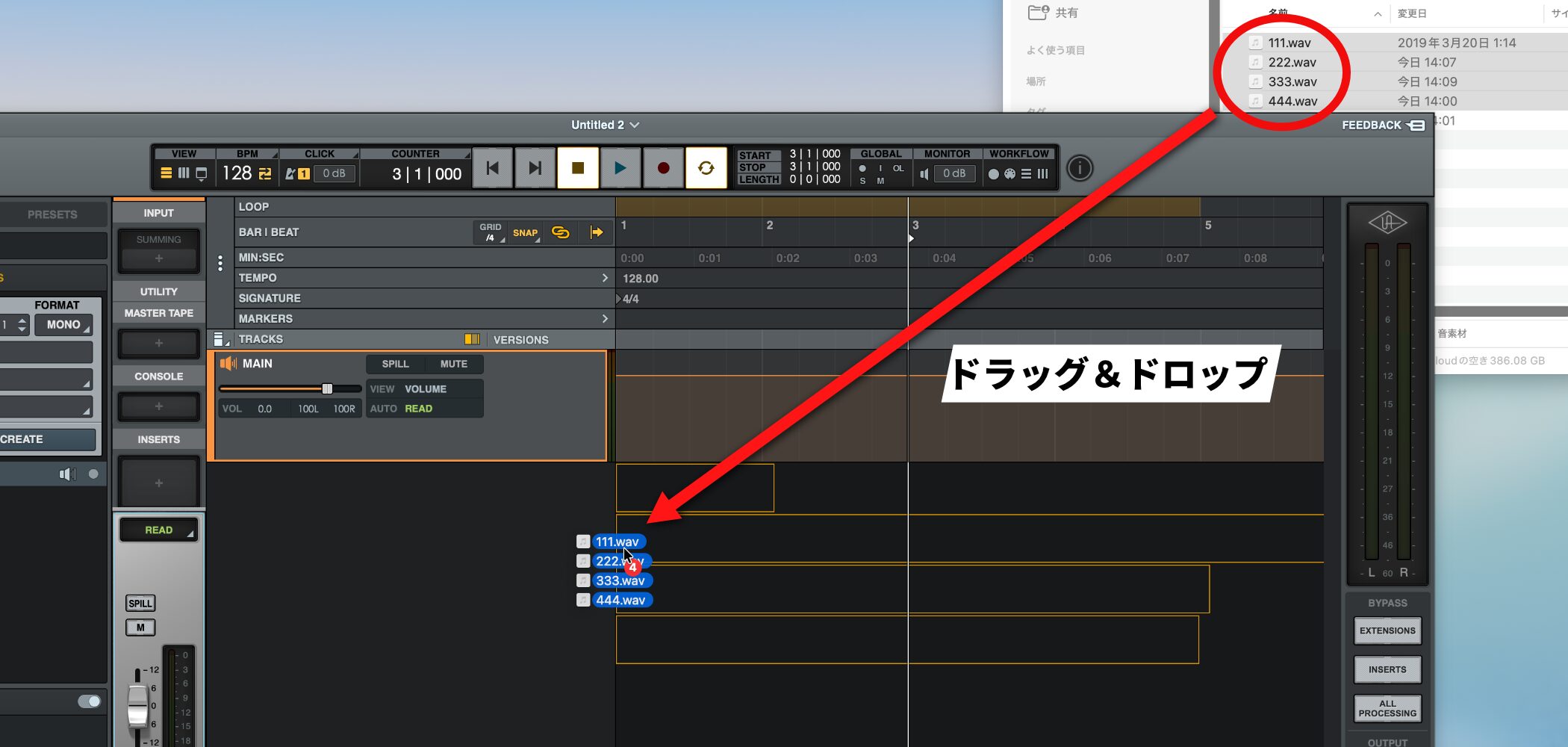 方法は簡単で、オーディオファイルをタイムラインにドラッグ&ドロップするだけです。