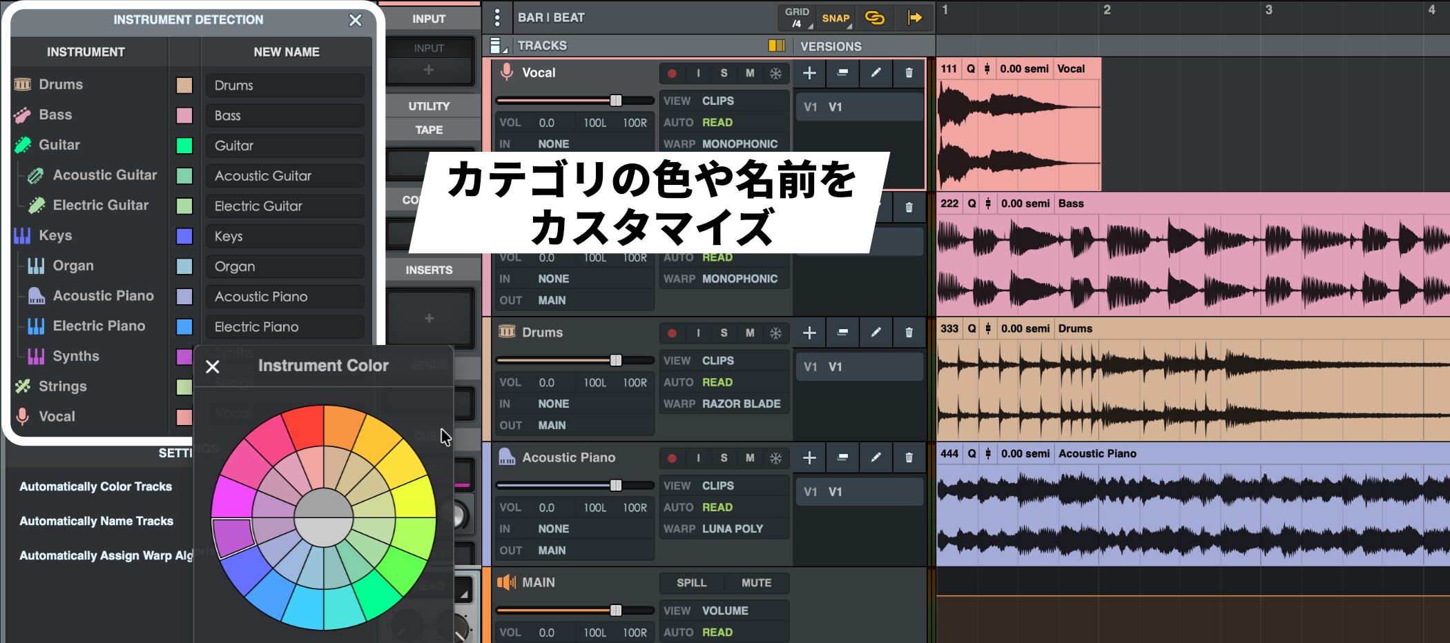 トラックを自動で色分け・リネーム(Instrument Detection)