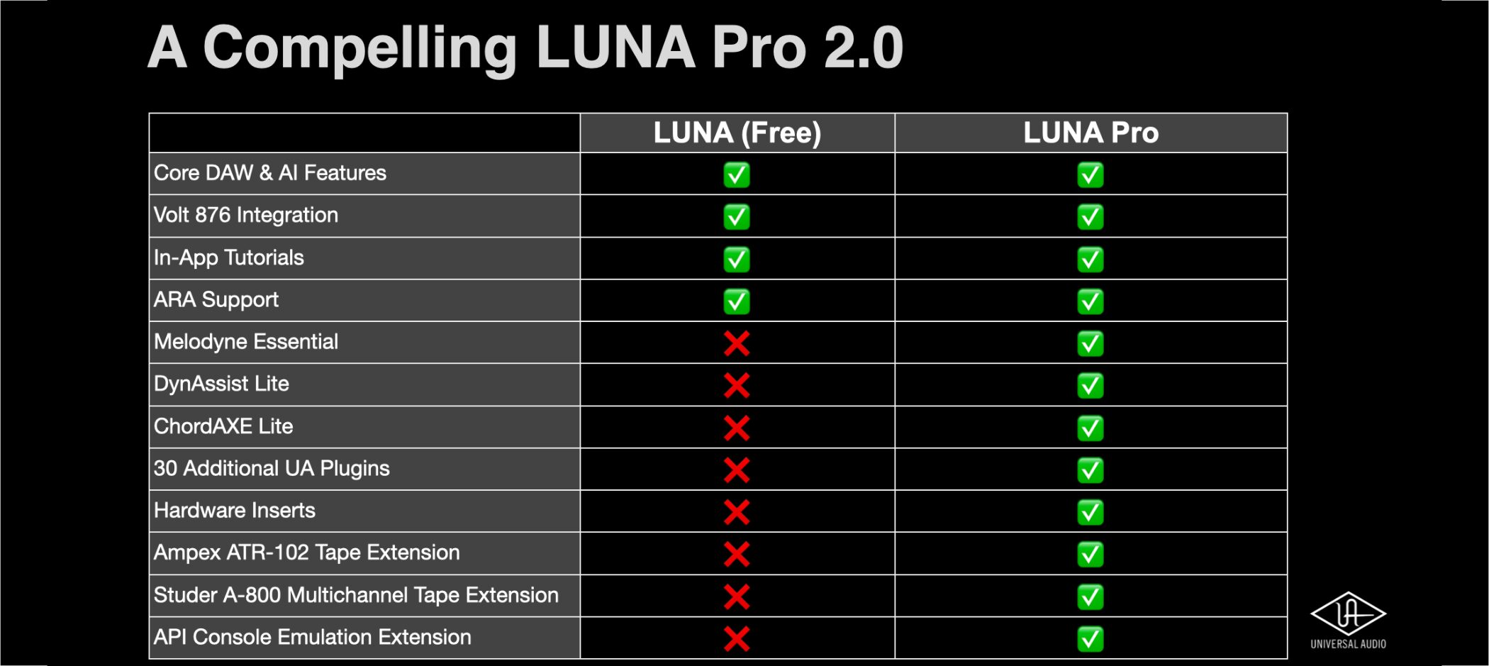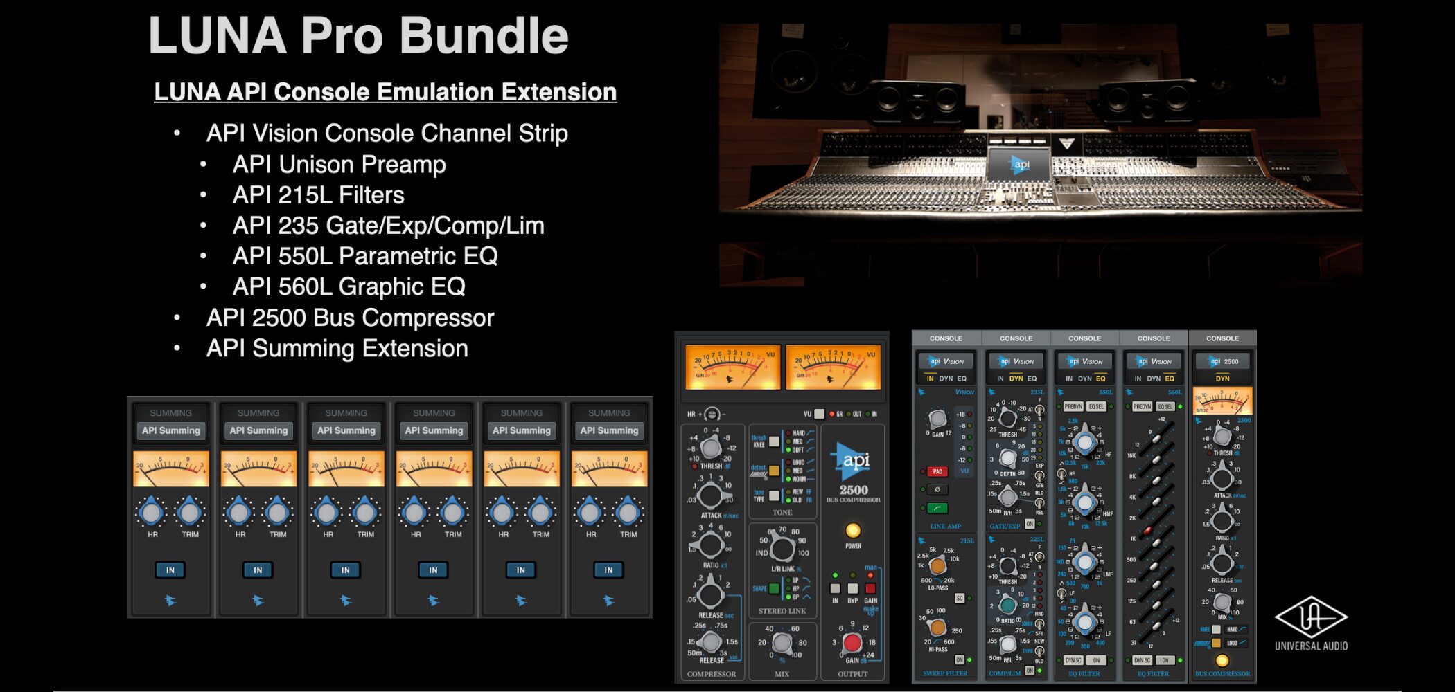 LUNA Pro 2.0には、単品購入すると総額45万円を超えるUADプラグインライセンスが付属します。