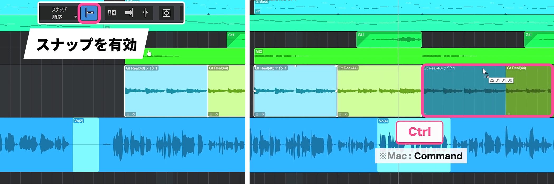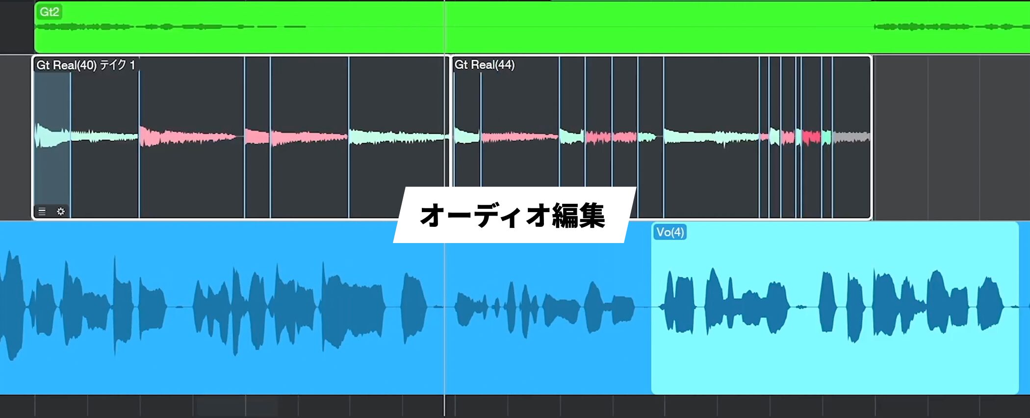 テイク間のつなぎ目を整える方法から、オーディオクオンタイズによるリズム補正まで、オーディオ編集の基本的な流れを解説します。