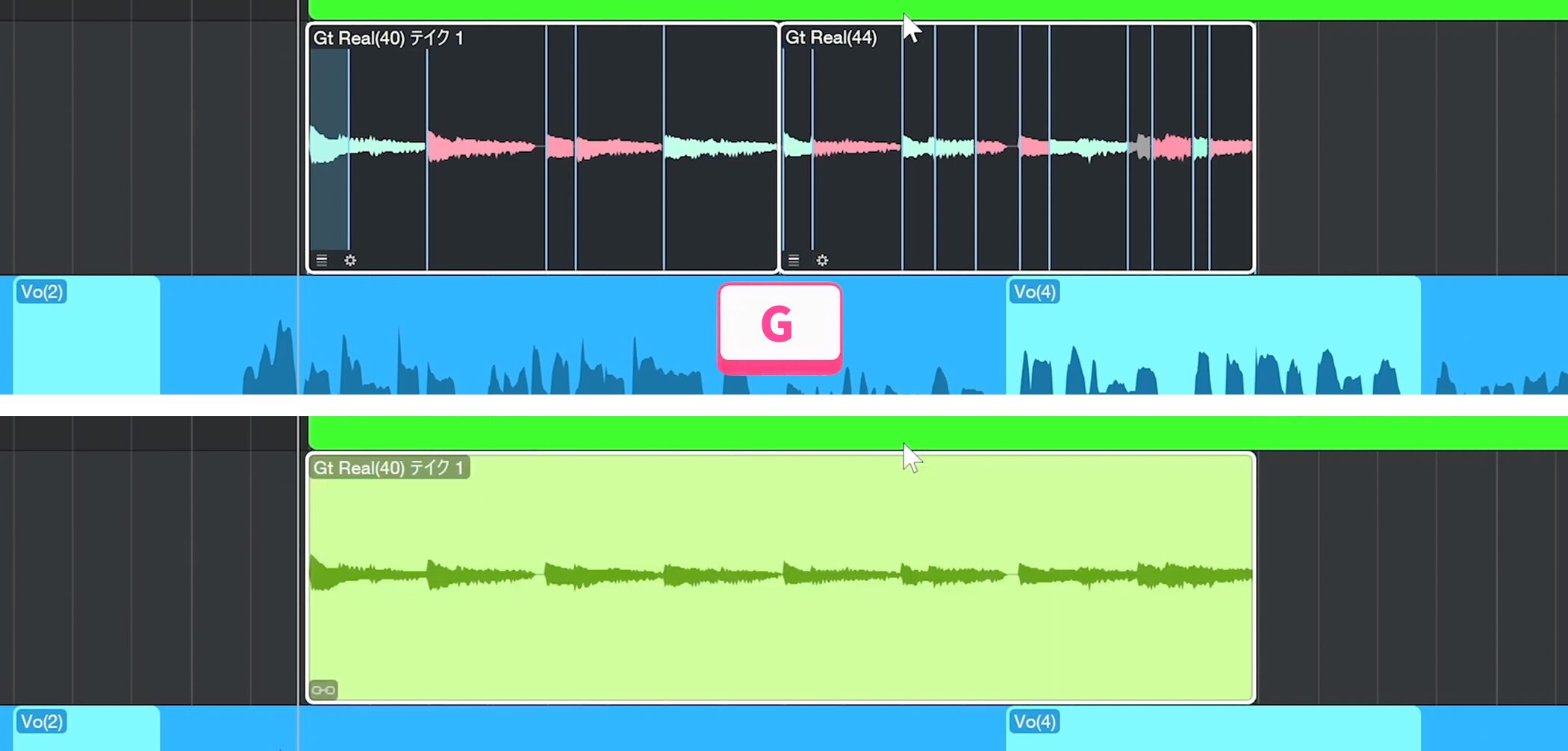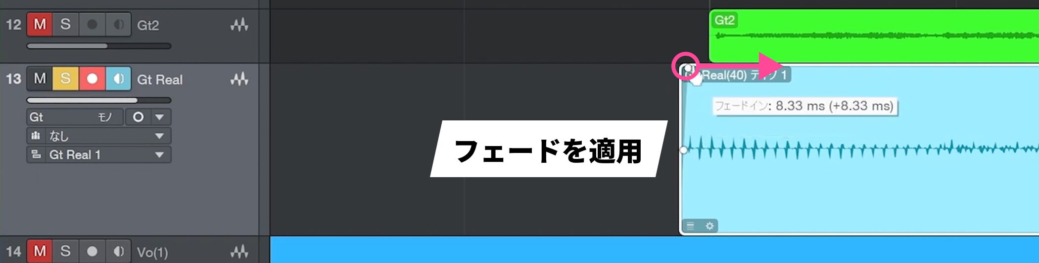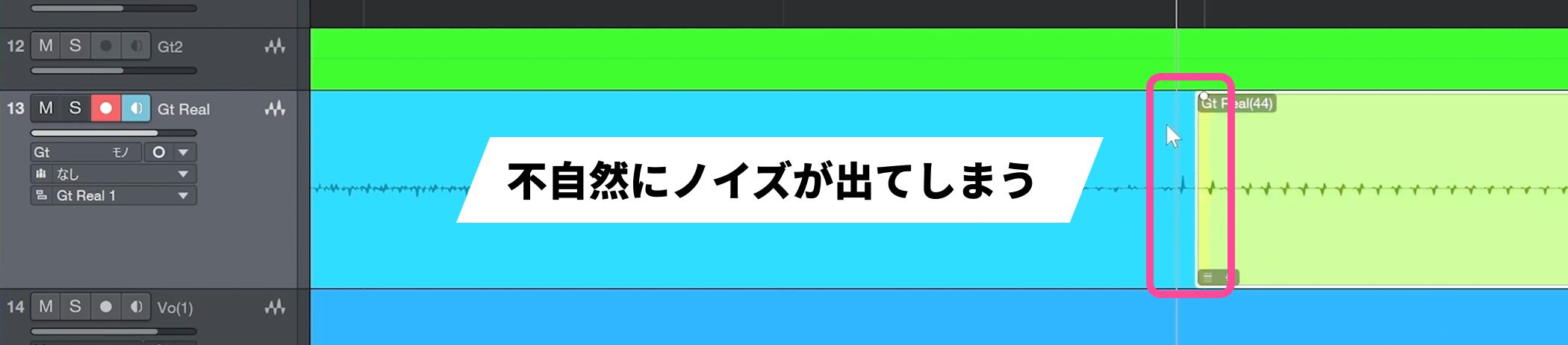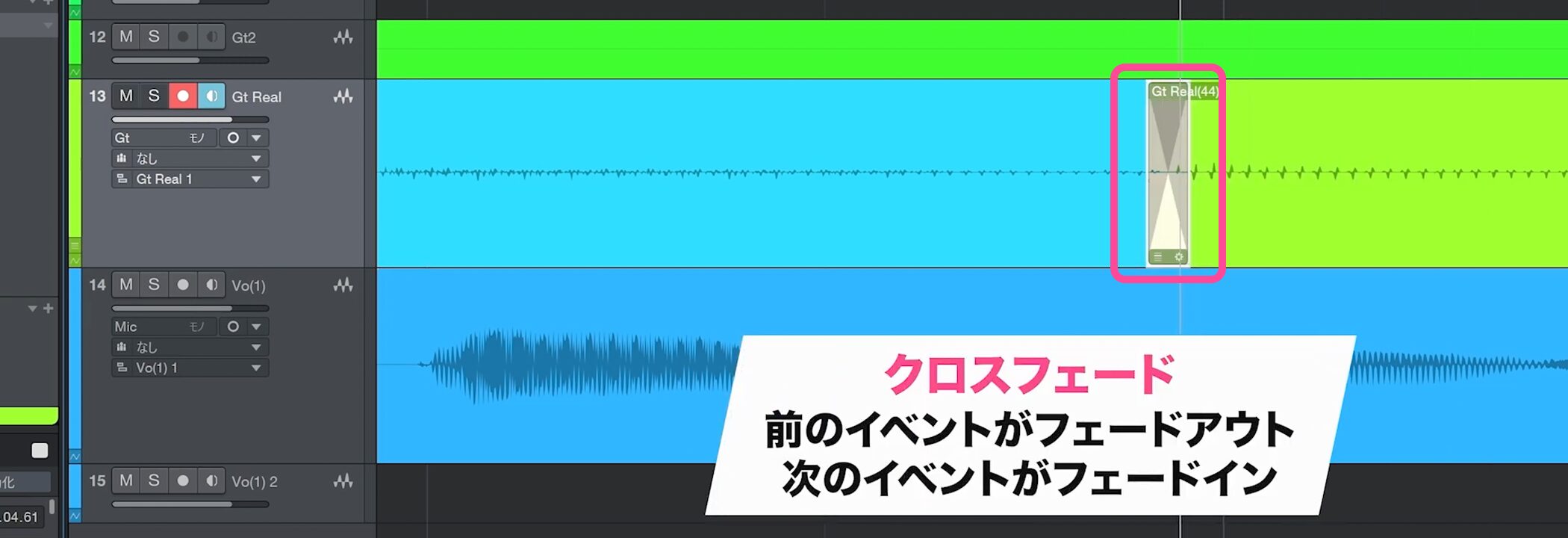 なお、ここで紹介したクロスフェードでテイクを自然につなぐ方法はボーカルでも有効です。