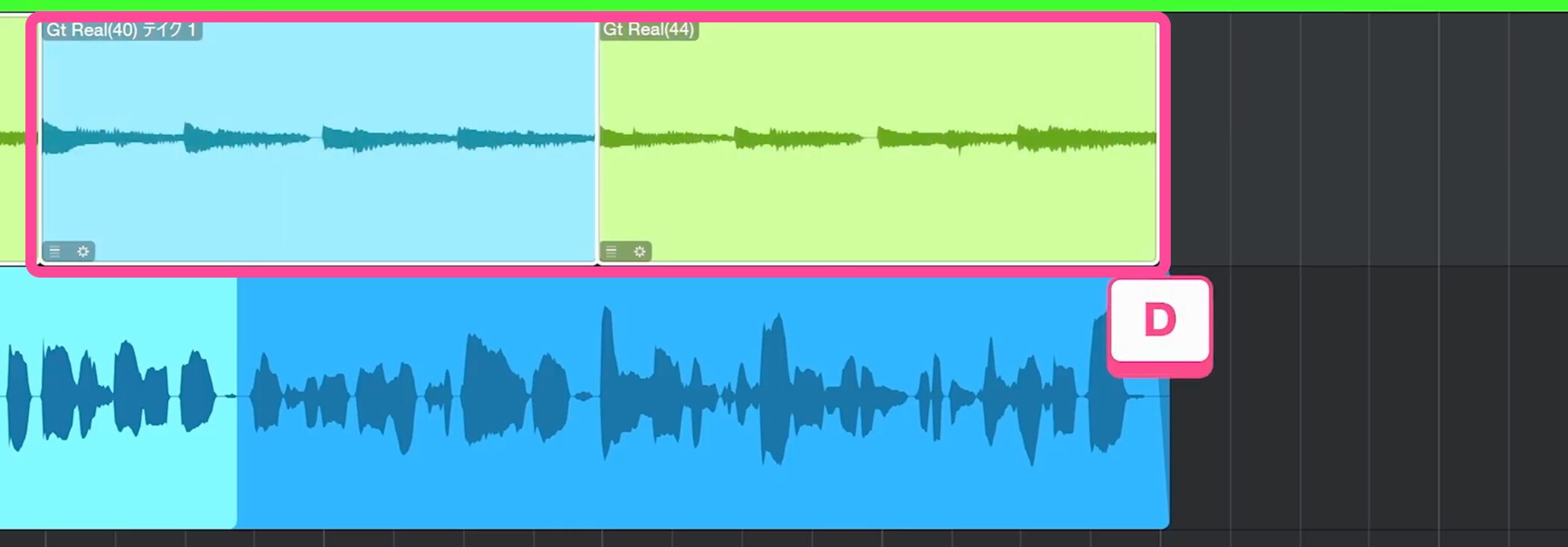 ボーカル補正の前に、同様の手順でテイクを整えてイベントを一本化しておくことをおすすめします。