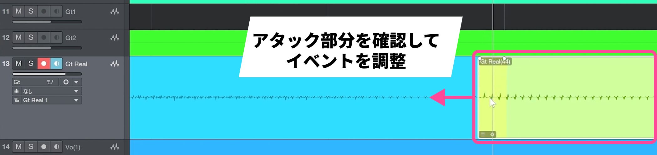 そのため、後ろのイベントを前に伸ばし、アタックがしっかり出るように調整します。