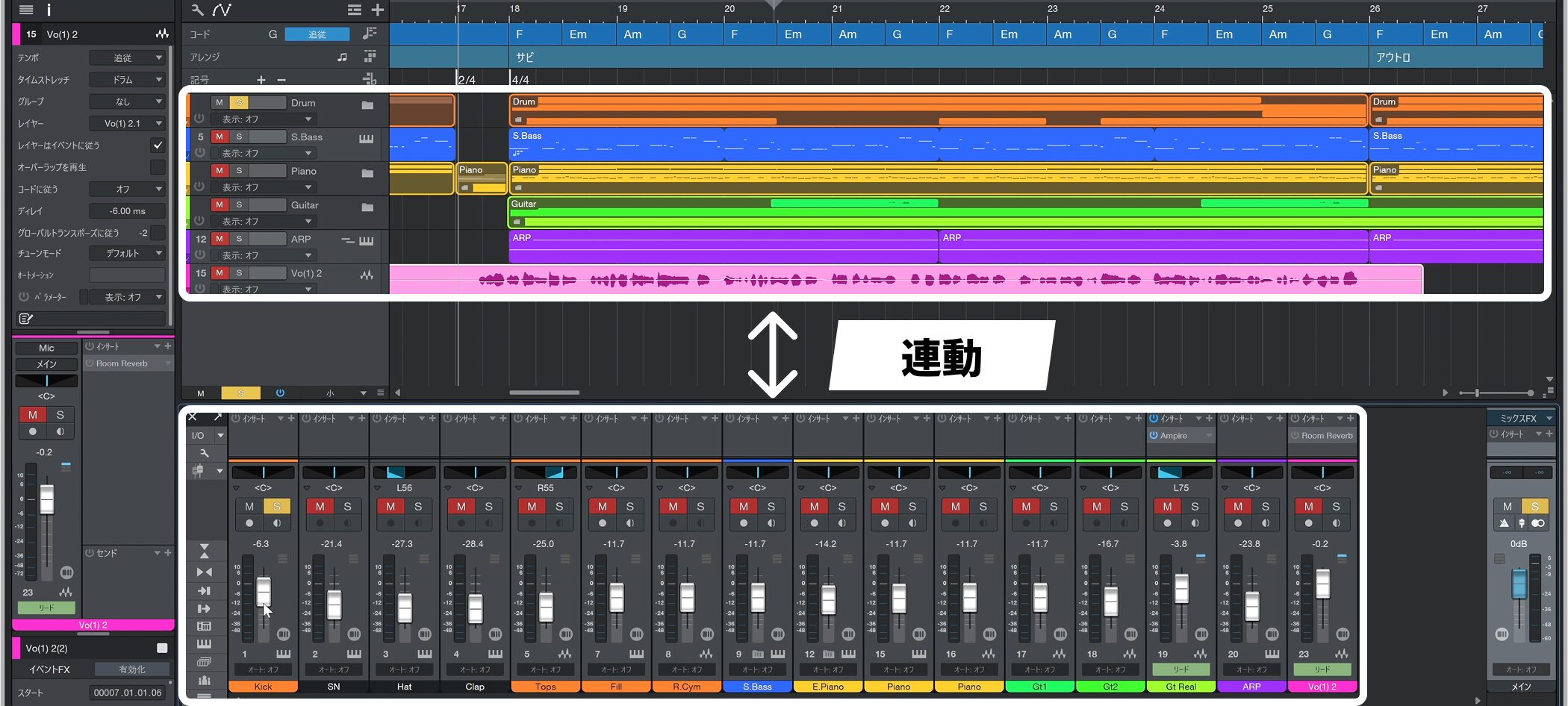 現段階ではFXチャンネルとボーカルは関連付いていません。