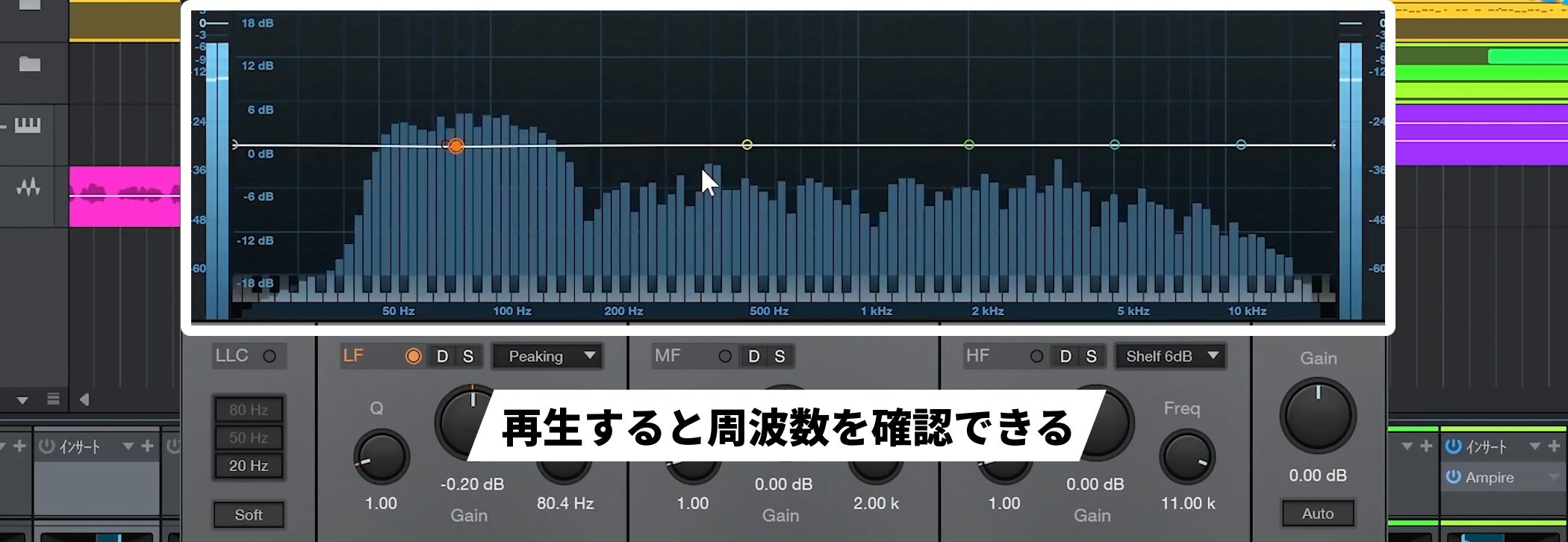 左が低域、右に行くにつれて高域になっていき、希望の帯域を上げ下げしてサウンドを作っていきます。