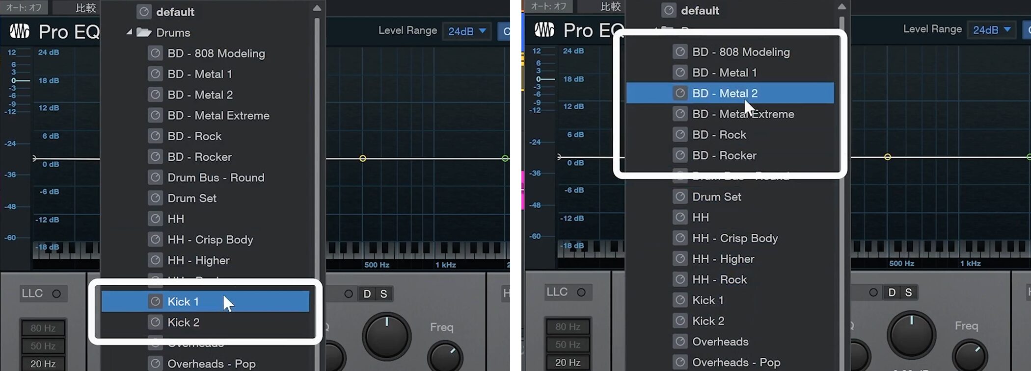 どこを上げてどこを下げたらいいのかわからない場合は、プリセットを活用します。
