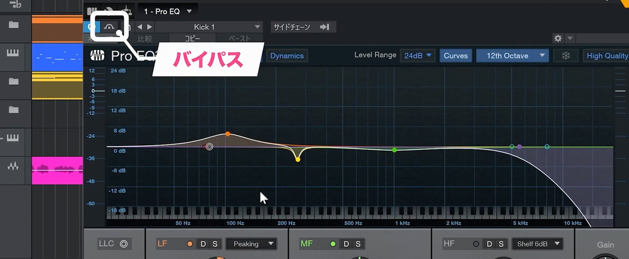 左上のバイパスボタンで適用前と適用後を切り替えることができます。