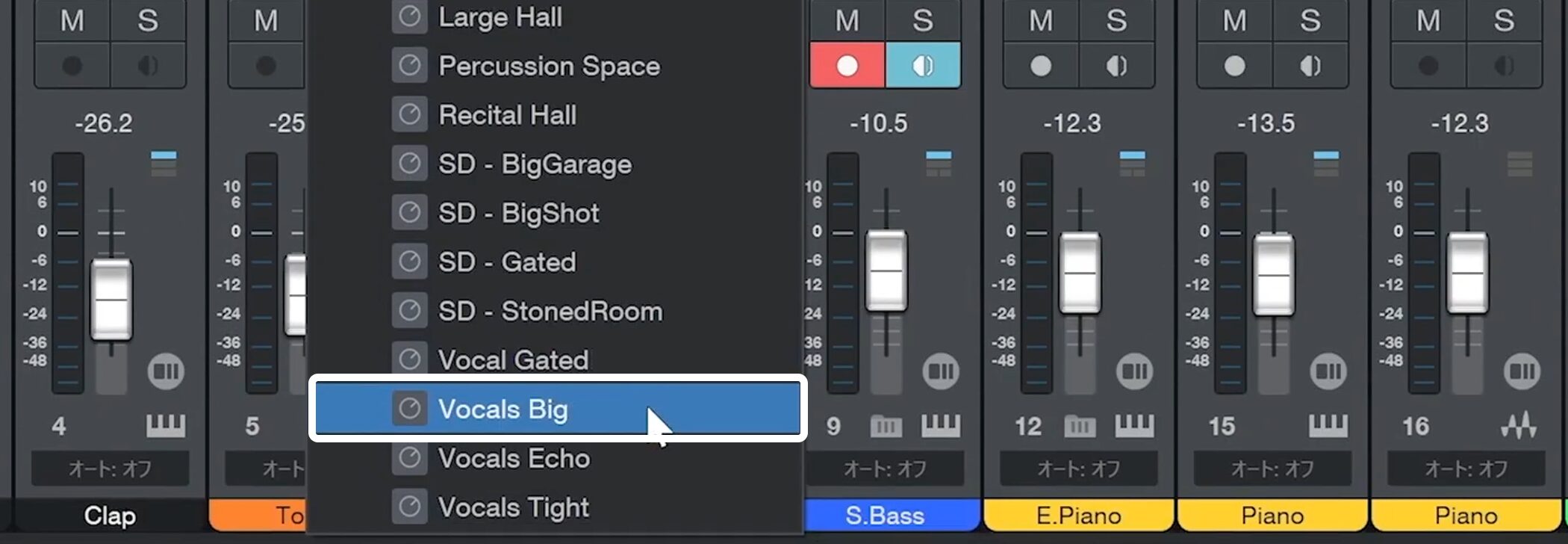 トラックごとにリバーブを立ち上げる必要がなくなり、CPUの節約やサウンド管理がしやすくなります。