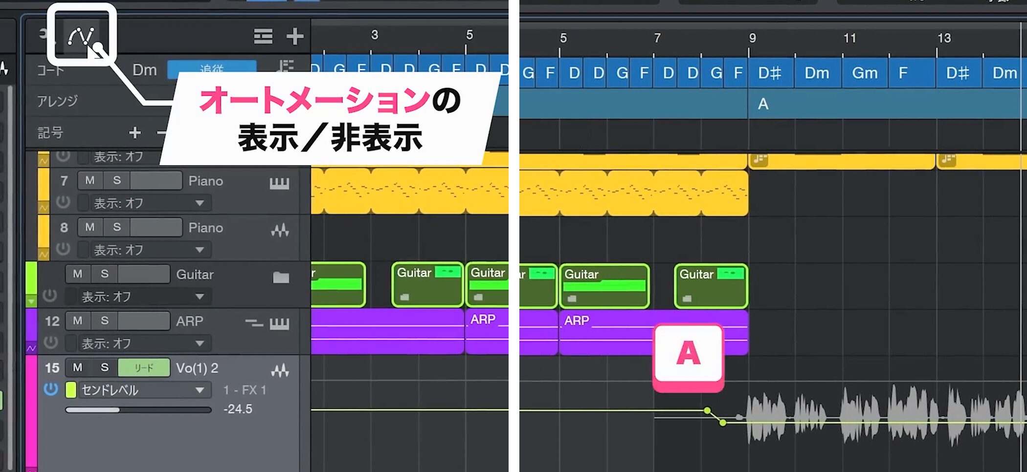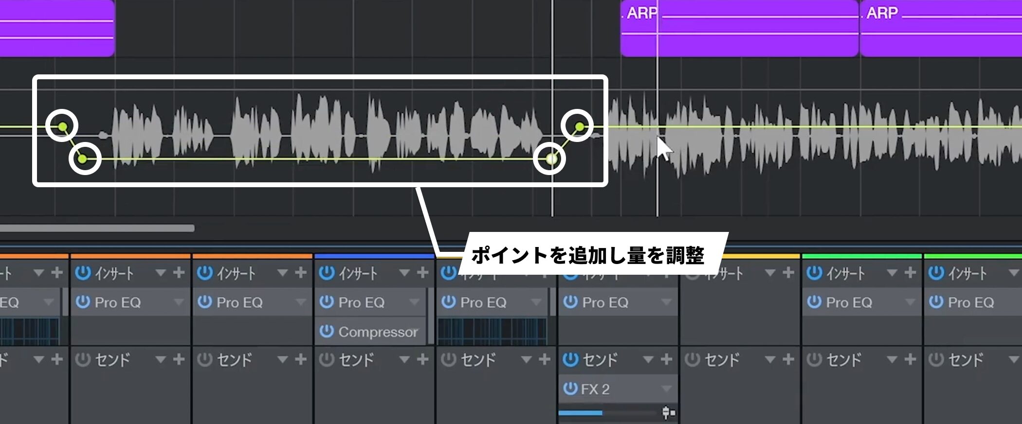 その場合はオートメーションで場面に応じてセンド量を調整します。