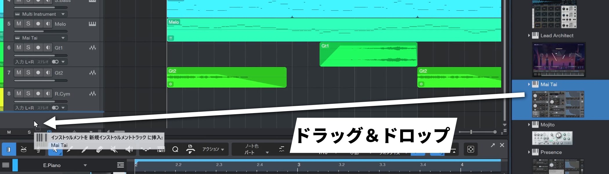 ここでは「Mai Tai」というシンセサイザーを使用します。