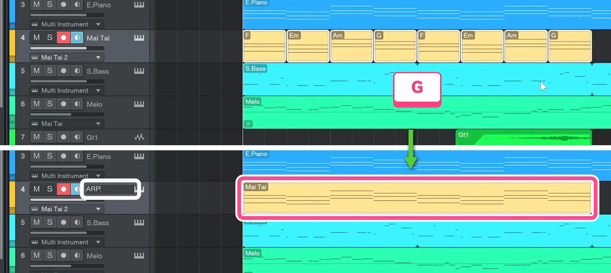 トラック名も「ARP(アルペジオ)」などの分かりやすい名前に変更しておきます。
