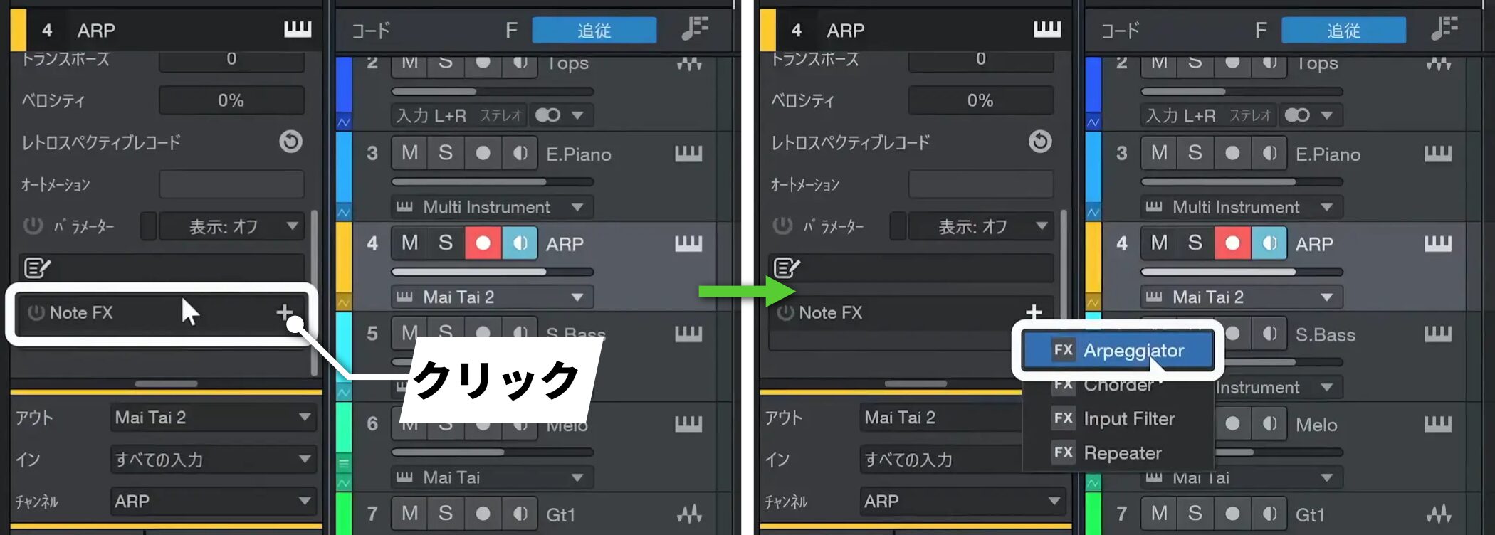 Note FXアルペジエイターによる動的なアルペジオパターンの設定方法