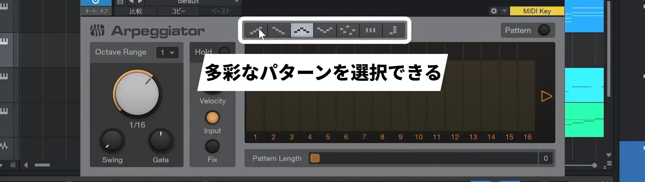 適切な設定を選択することで、楽曲に最適なアルペジオパターンを作成できます。