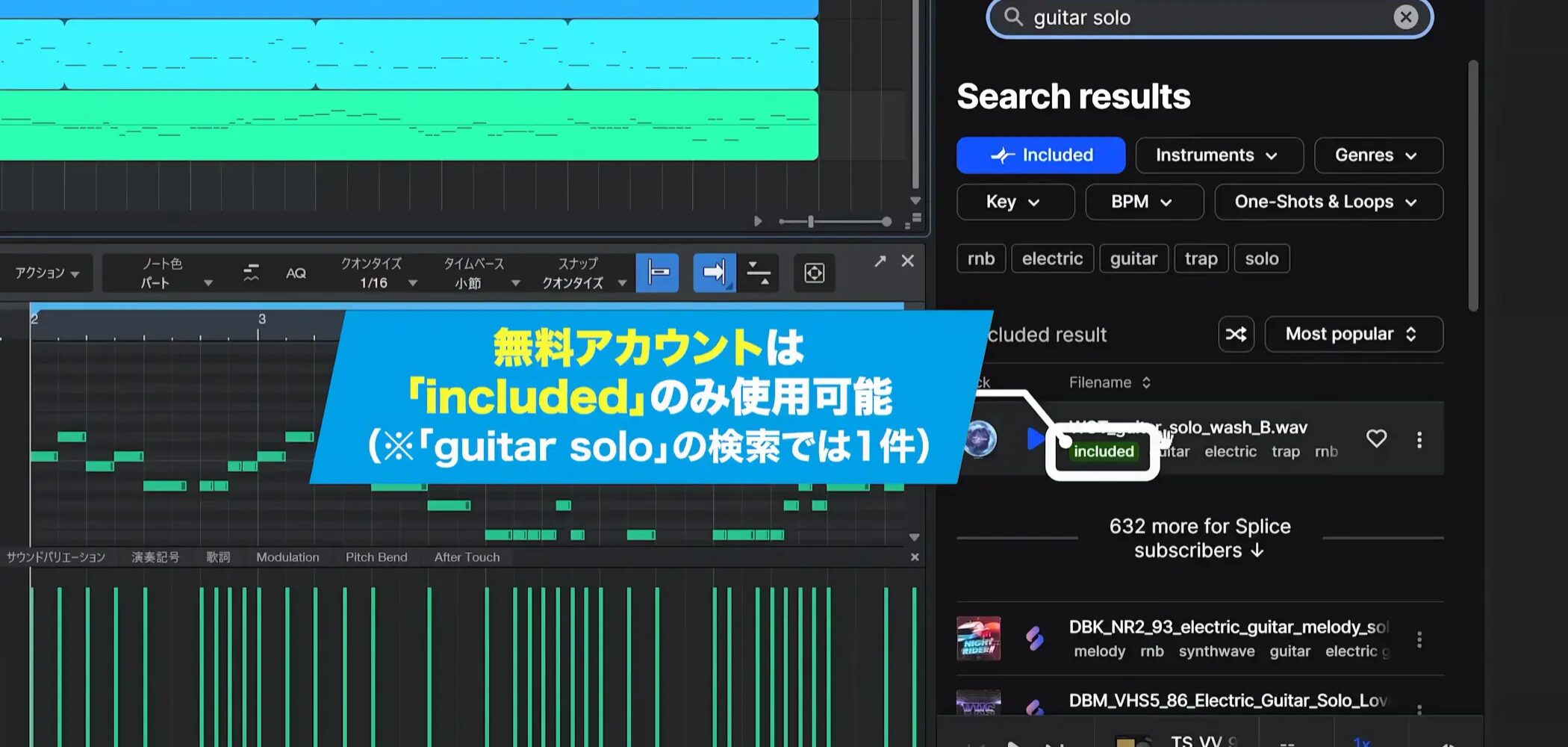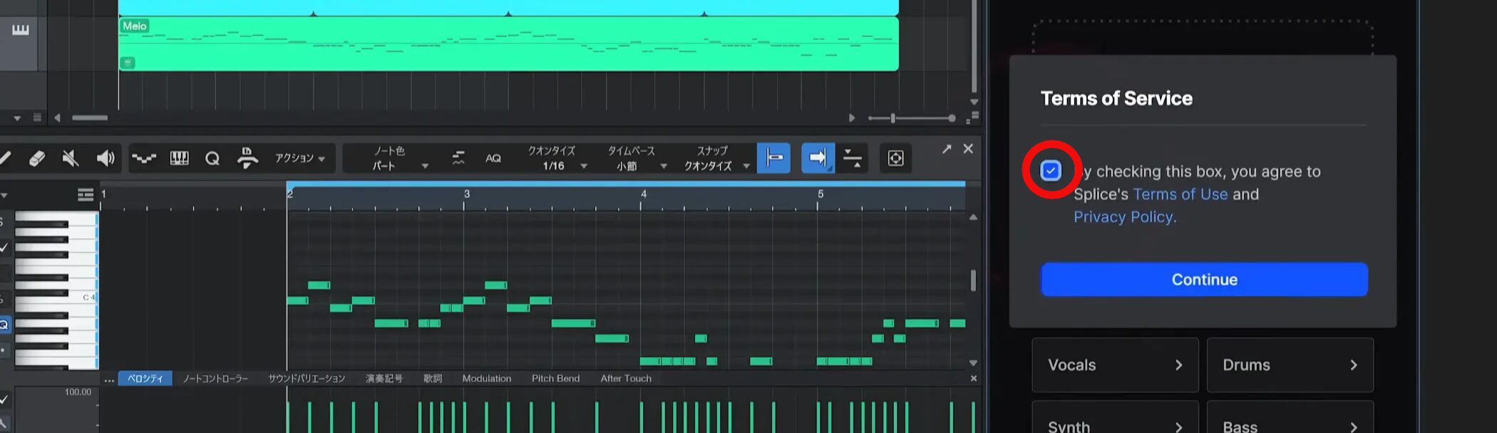 この設定により、Splice素材のキーが楽曲のキーと同期するため、調性の不一致を防げます。