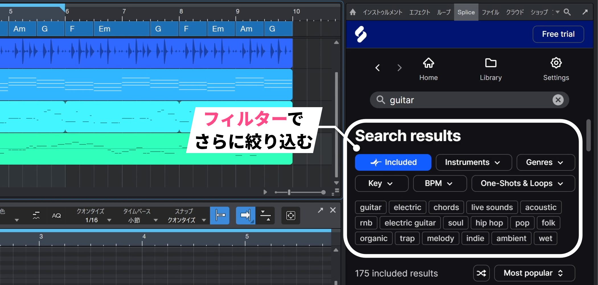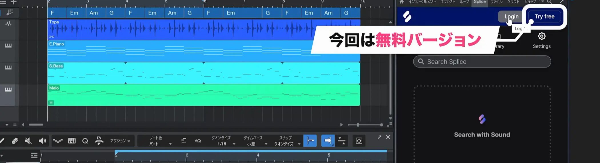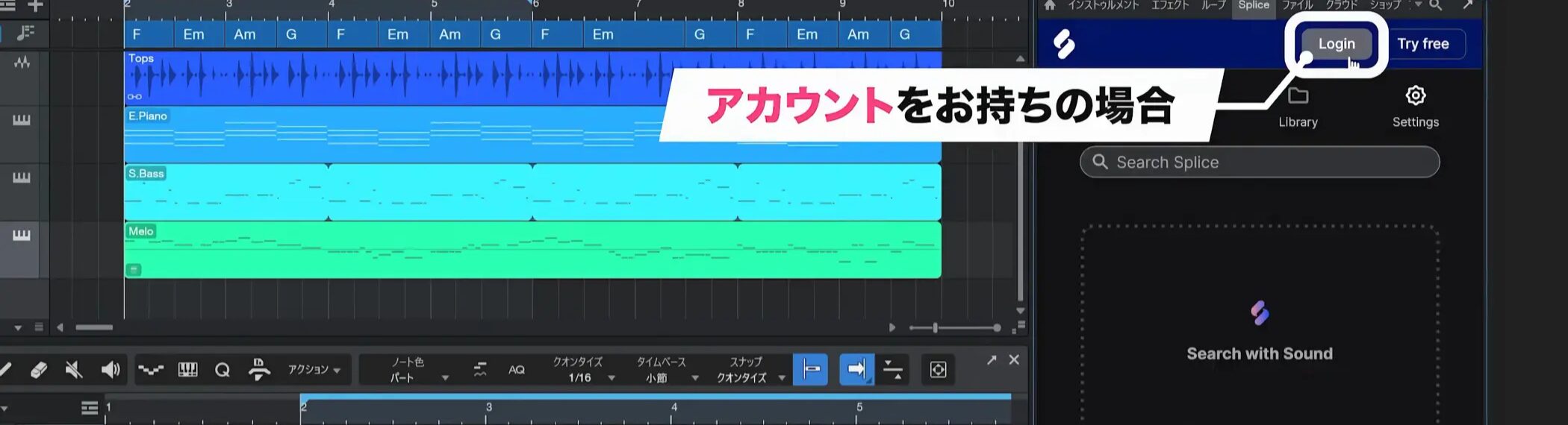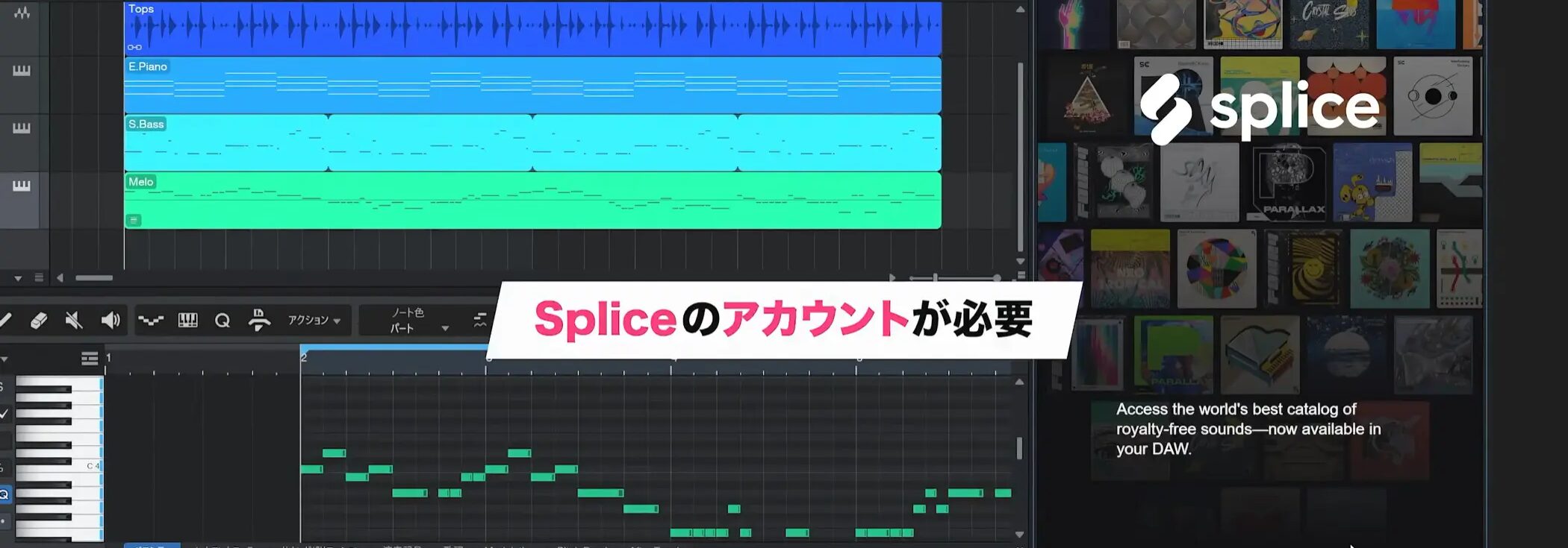 Studio Oneには世界的に有名な音楽素材サービス「Splice」が統合されており、膨大な音楽サンプルライブラリを直接DAW内から活用できます。