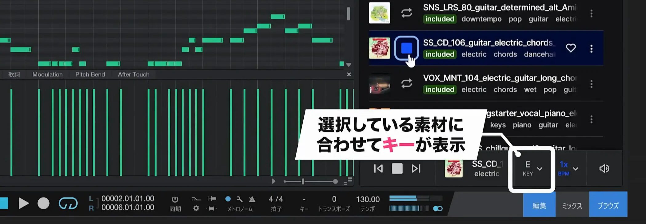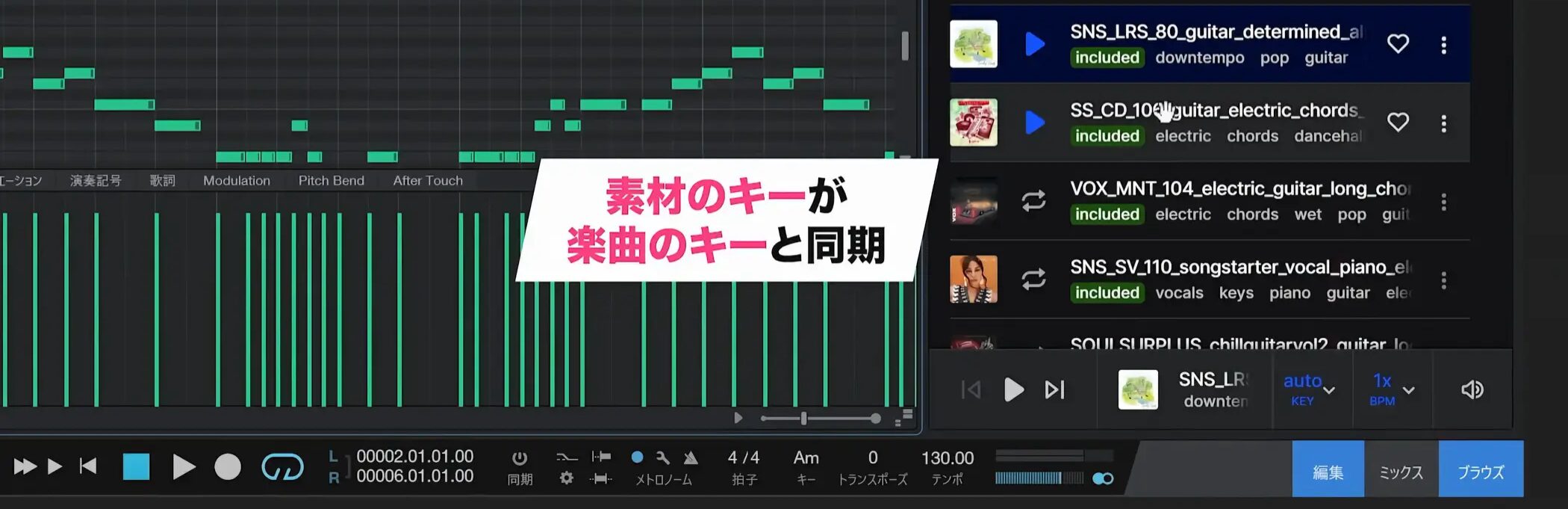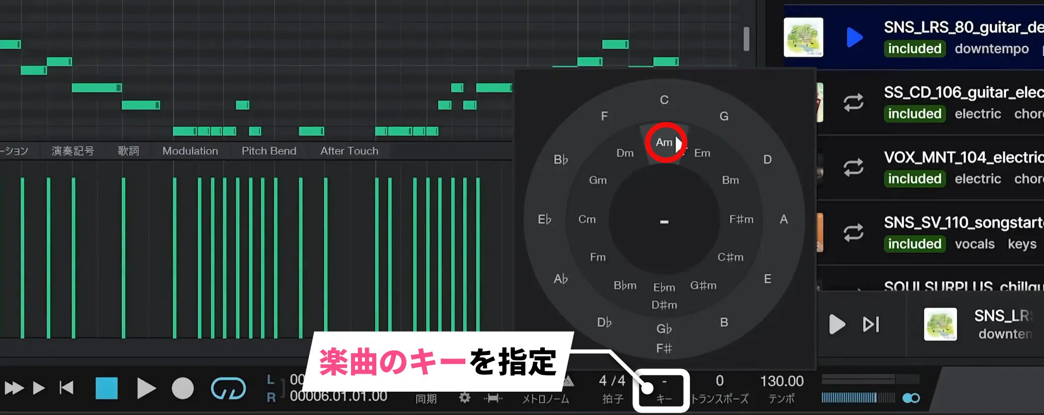 素材を使用する際には、楽曲とキーを一致させることが重要です。