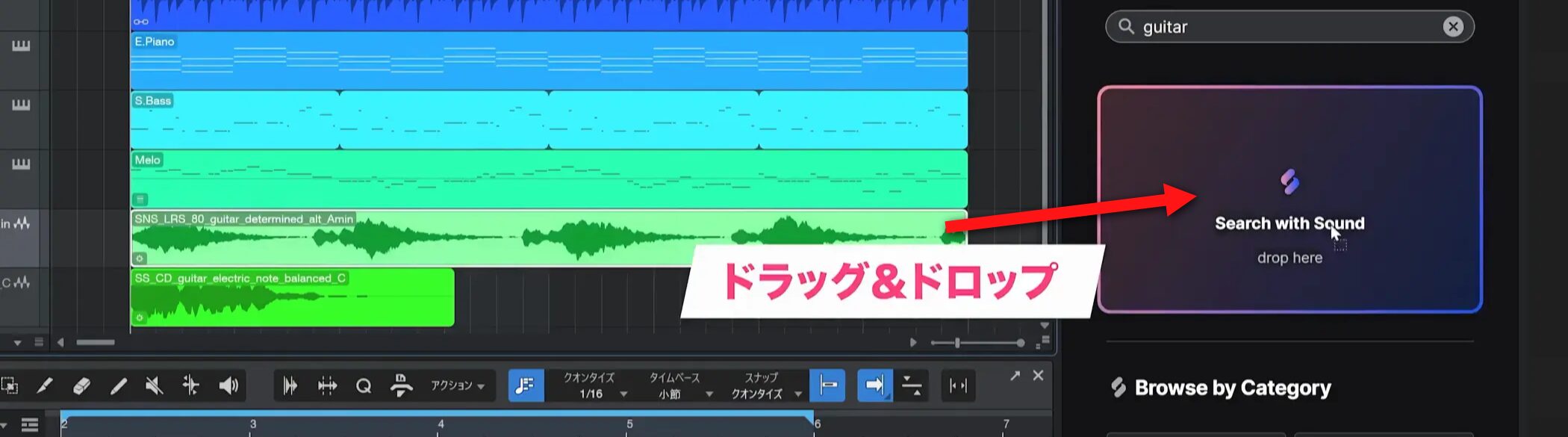 既存のサウンドファイルを検索エリアにドラッグ&ドロップします。