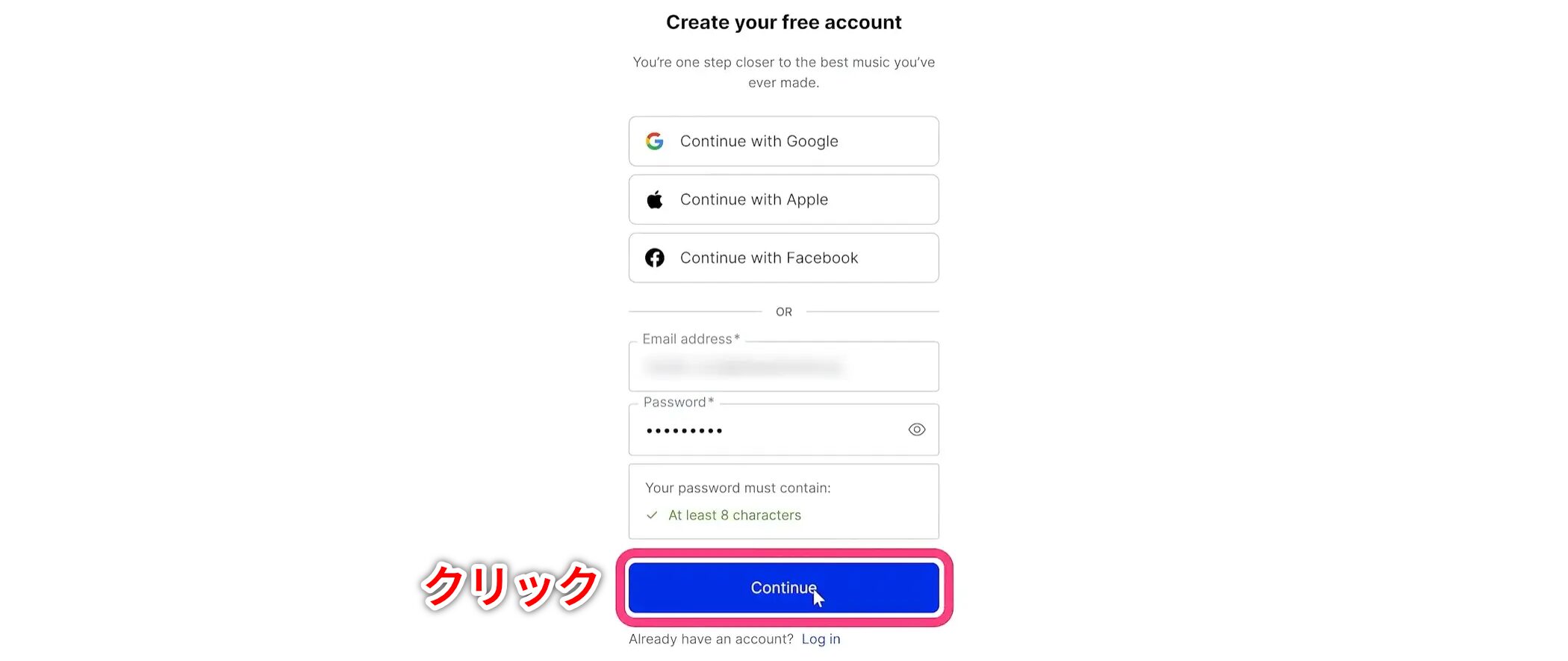 アカウント作成ページでは、GoogleアカウントやAppleアカウント、またはお使いのメールアドレスを使用してアカウントを作成できます。