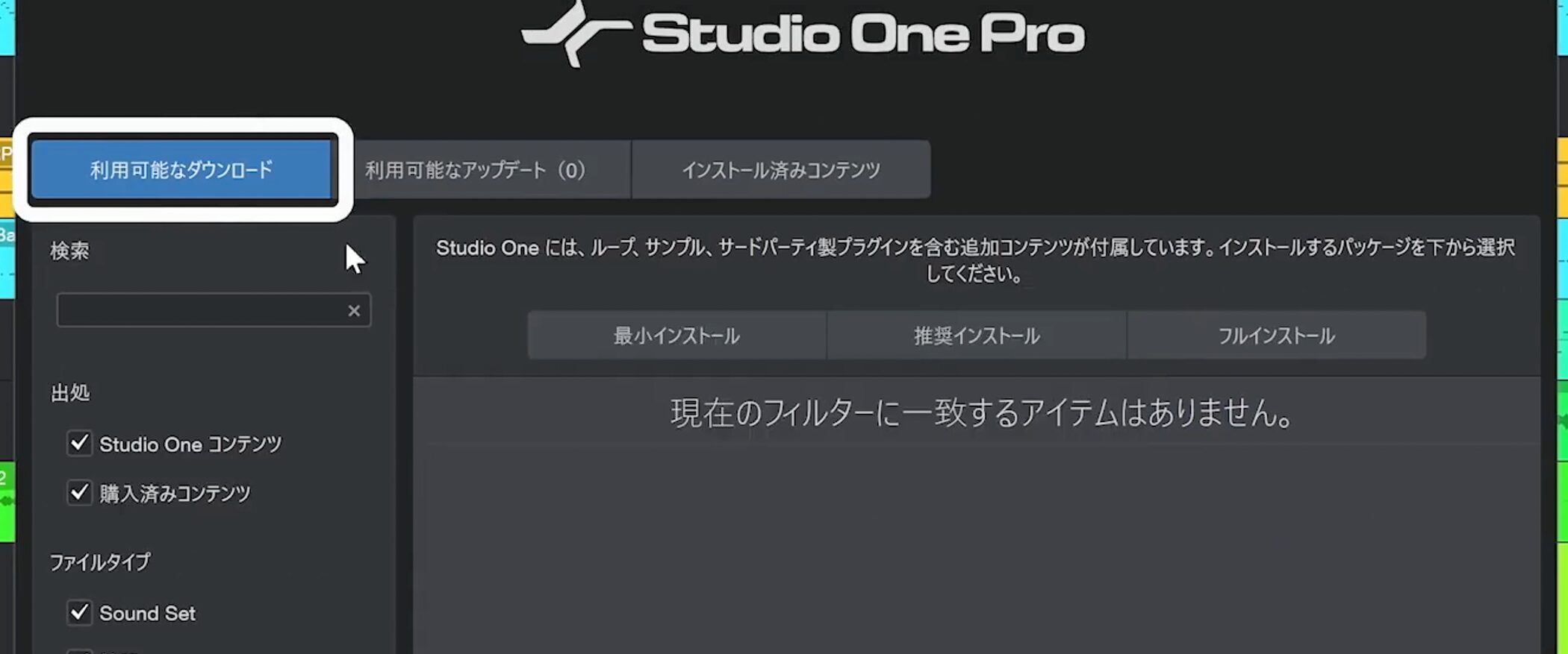 まだインストールが終わっていない場合は、「利用可能なダウンロード」の中に出てきますので、インストールを行います。