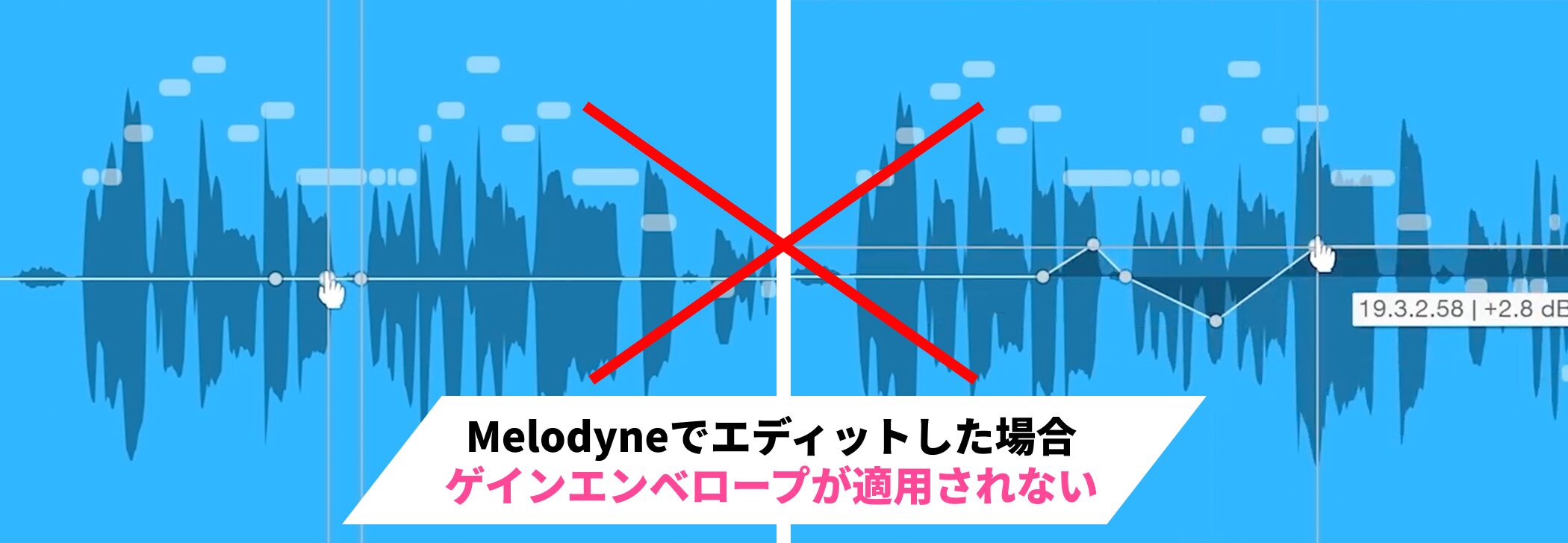 注意点として、Melodyne Essentialでエディットを行った場合は、ゲインエンベロープが適用されません。