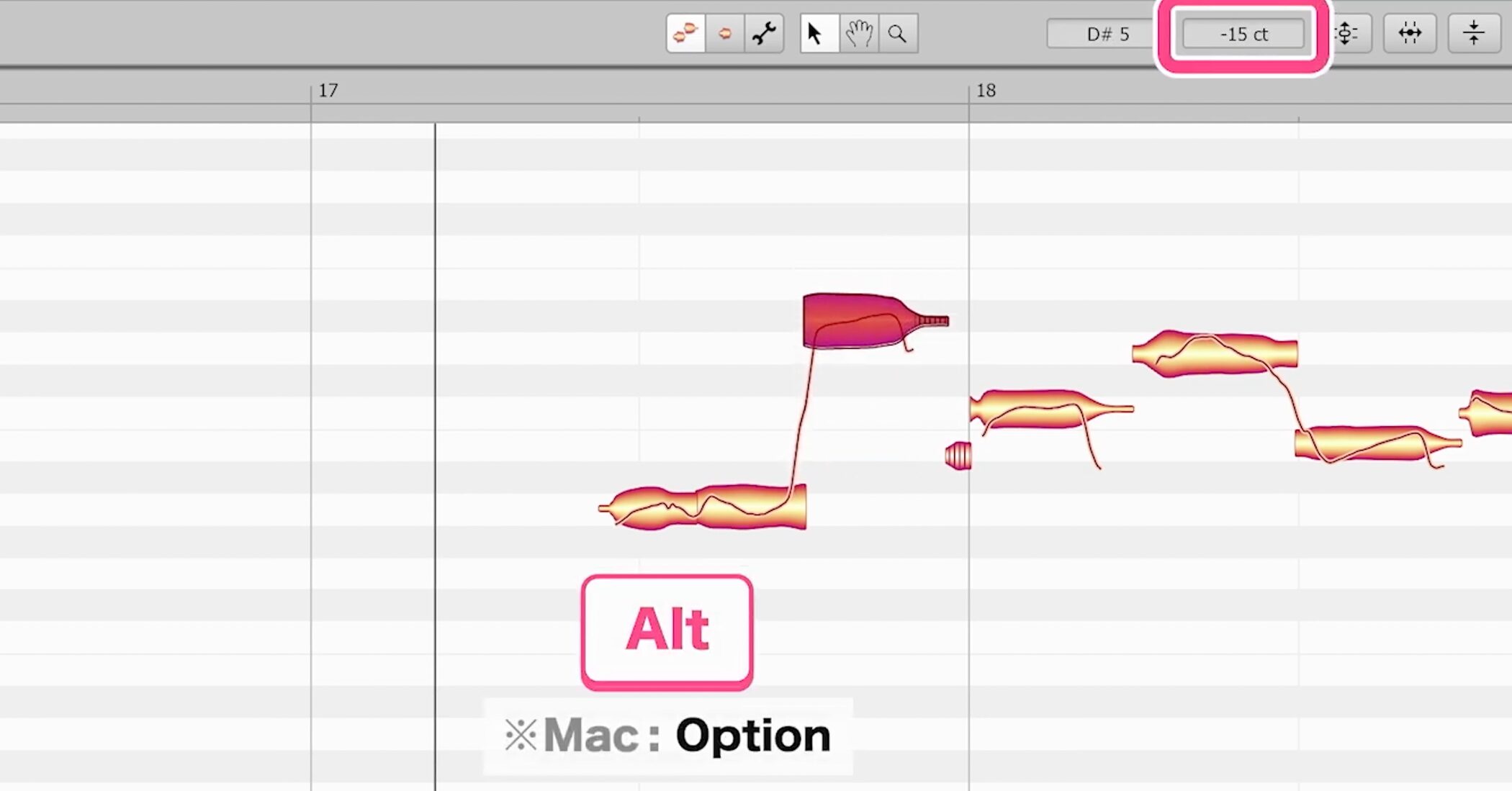 キーボードのAltキーを押しながらドラッグすると、100分の1半音(セント)単位で微調整できます。