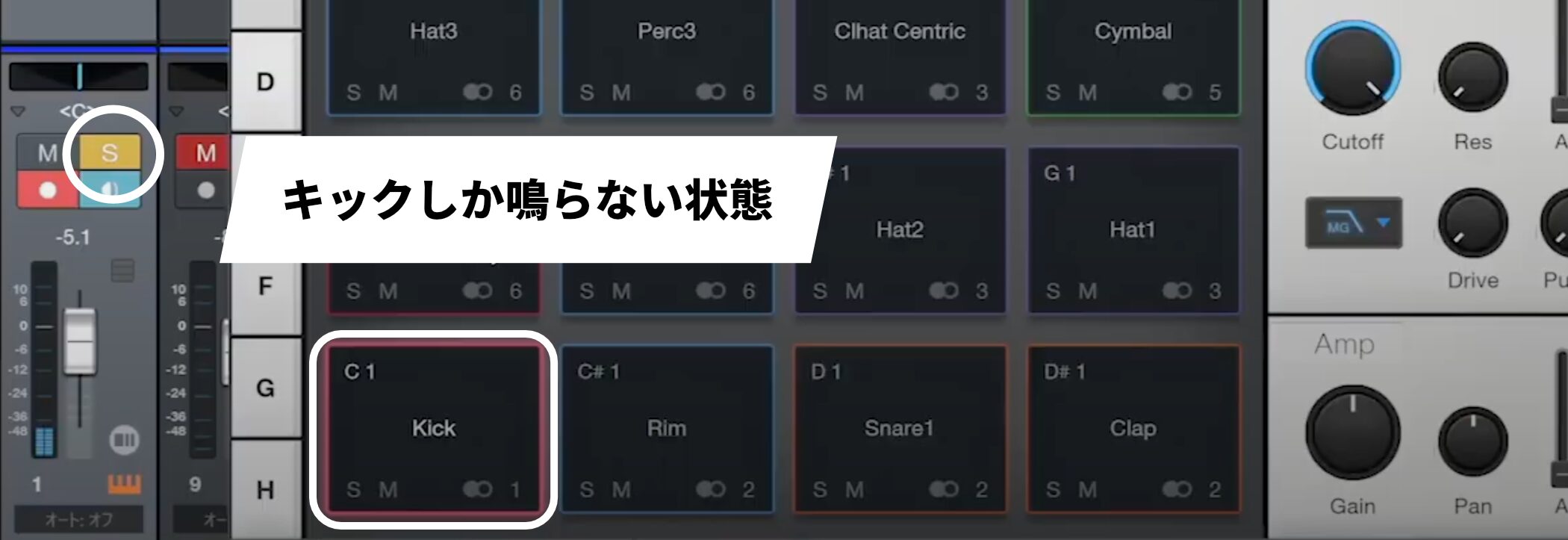 ドラムトラックをソロで再生するとキックしか聞こえないのは、リズムトラックがキック、スネア、ハイハットなど、それぞれ異なる特性を持つ複数の楽器で構成されているためです。