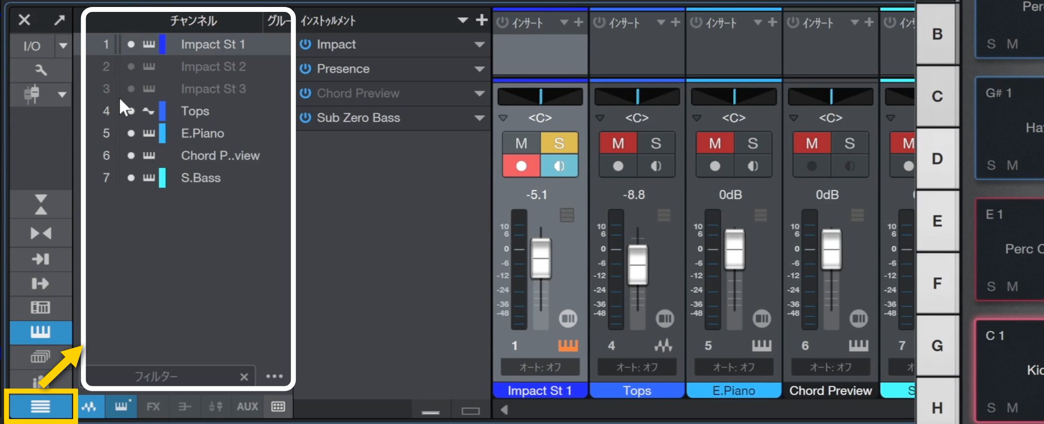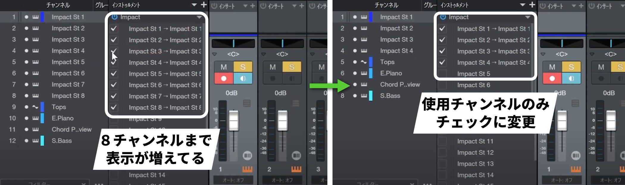 そこで、これらを別のチャンネルから出力し、より細かく調整できるようにします。