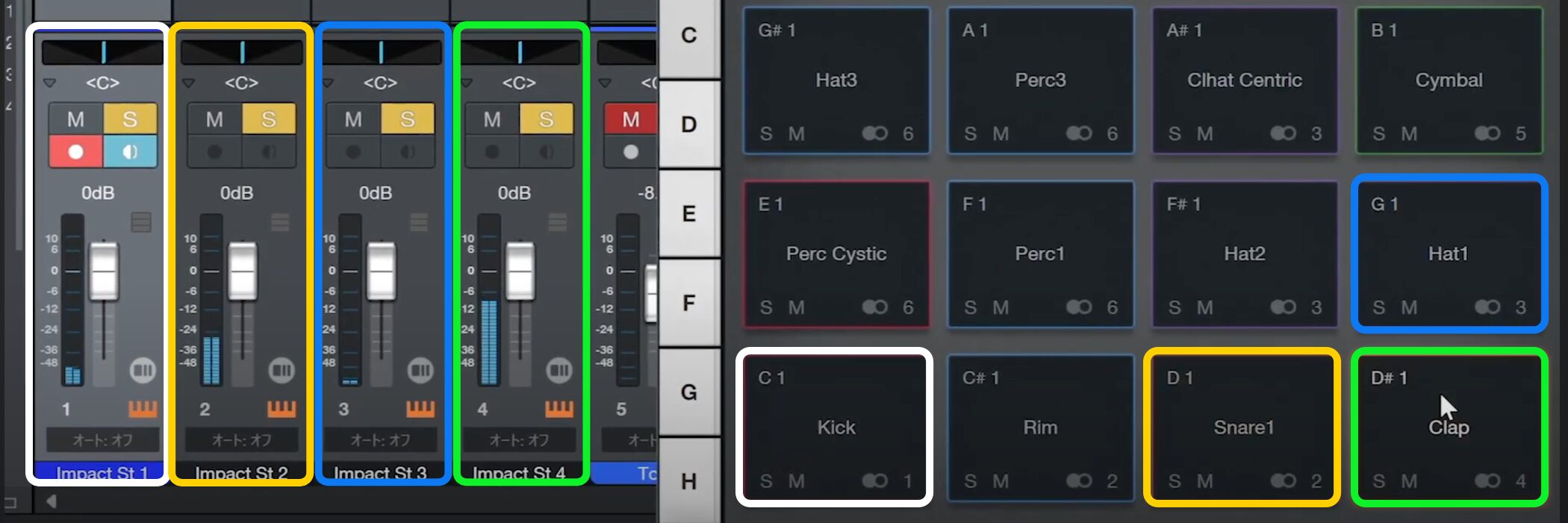 これでキックが1番、スネアが2番、ハイハットが3番、クラップが新たに設定した4番という配置になります。