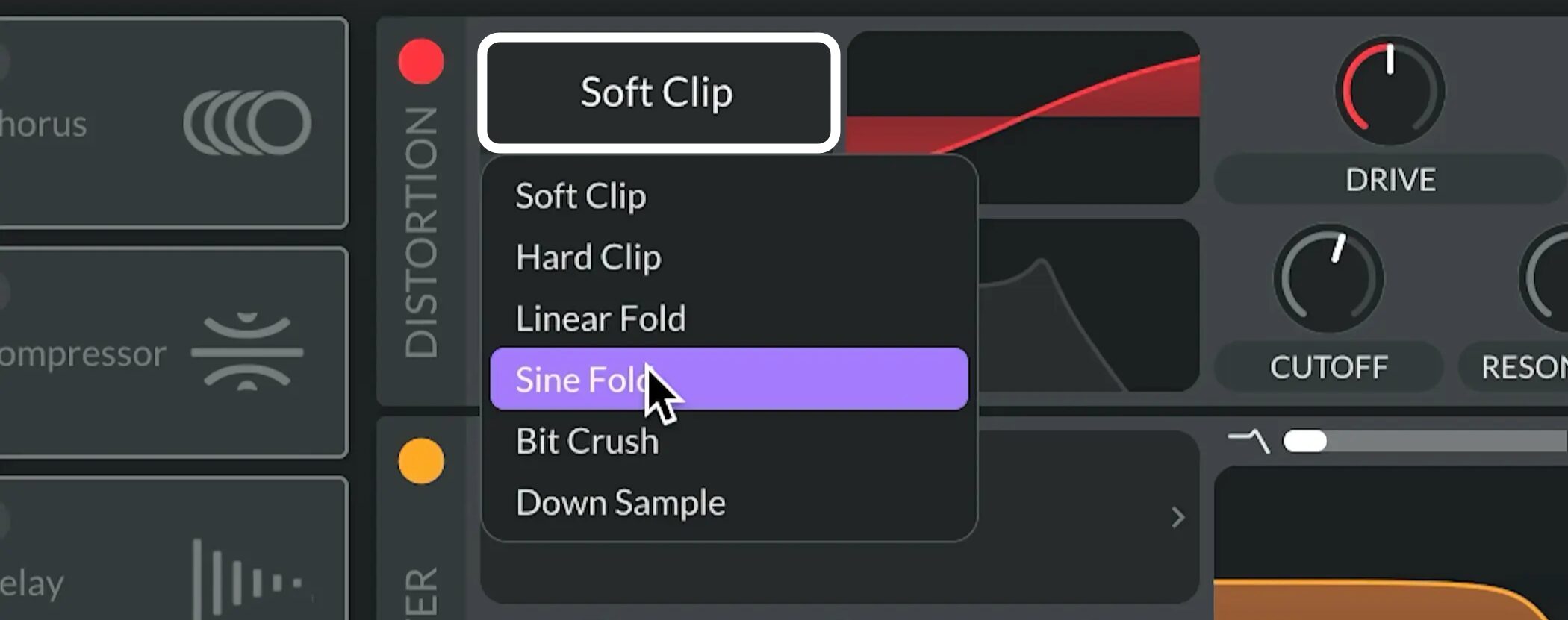 DRIVEを上げて歪みを加えることで存在感を与えます。