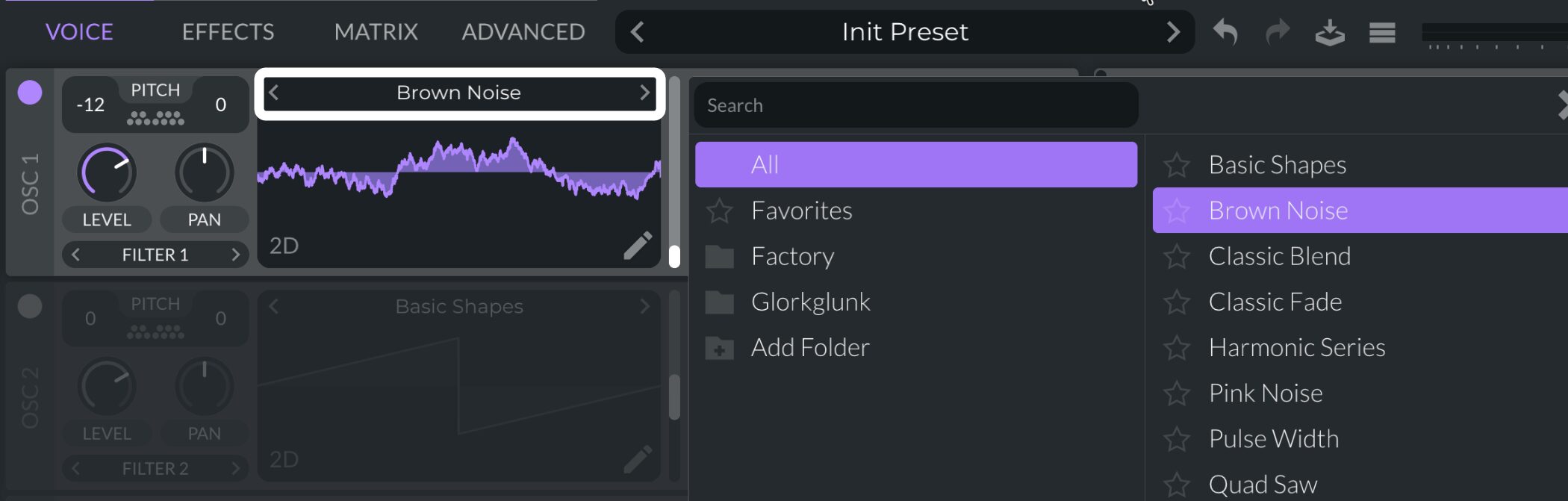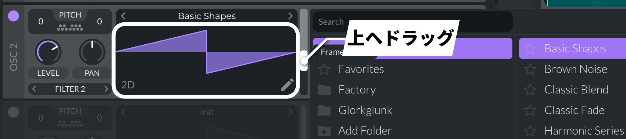 次にOSC2を立ち上げ、波形をBasic Shapesに設定します。